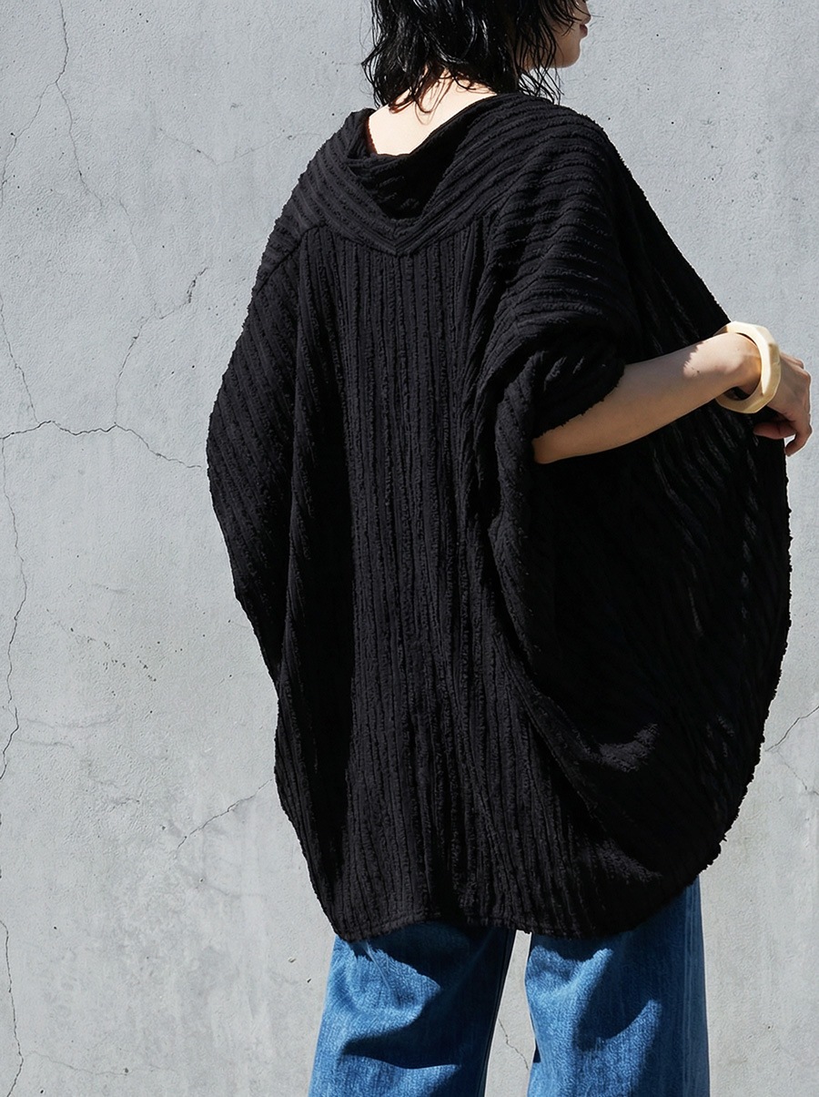 たっぷりとしたドルマンスリーブとゆったり広がるドルマン形状が身体のラインを拾わず、自然な体型カバーを叶えます。