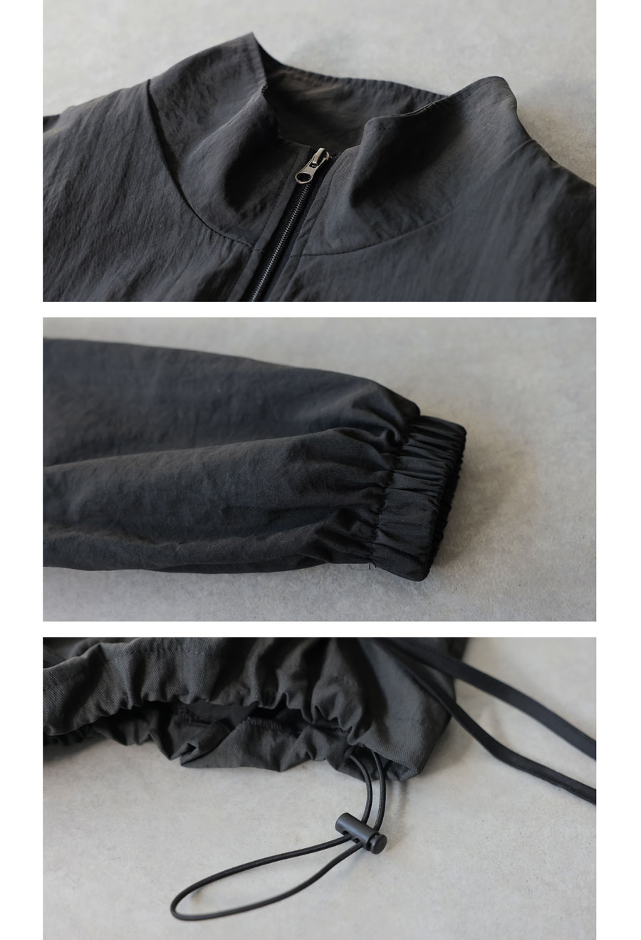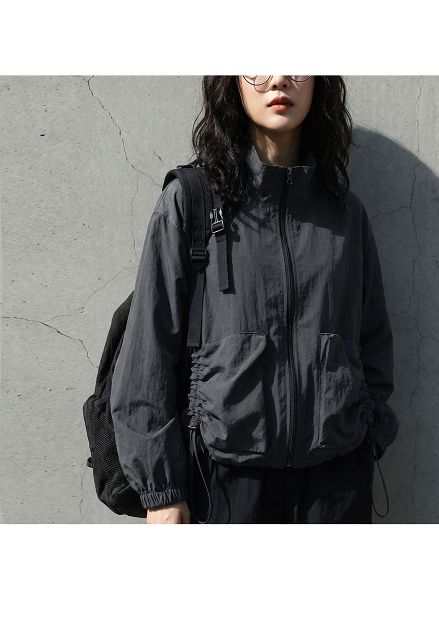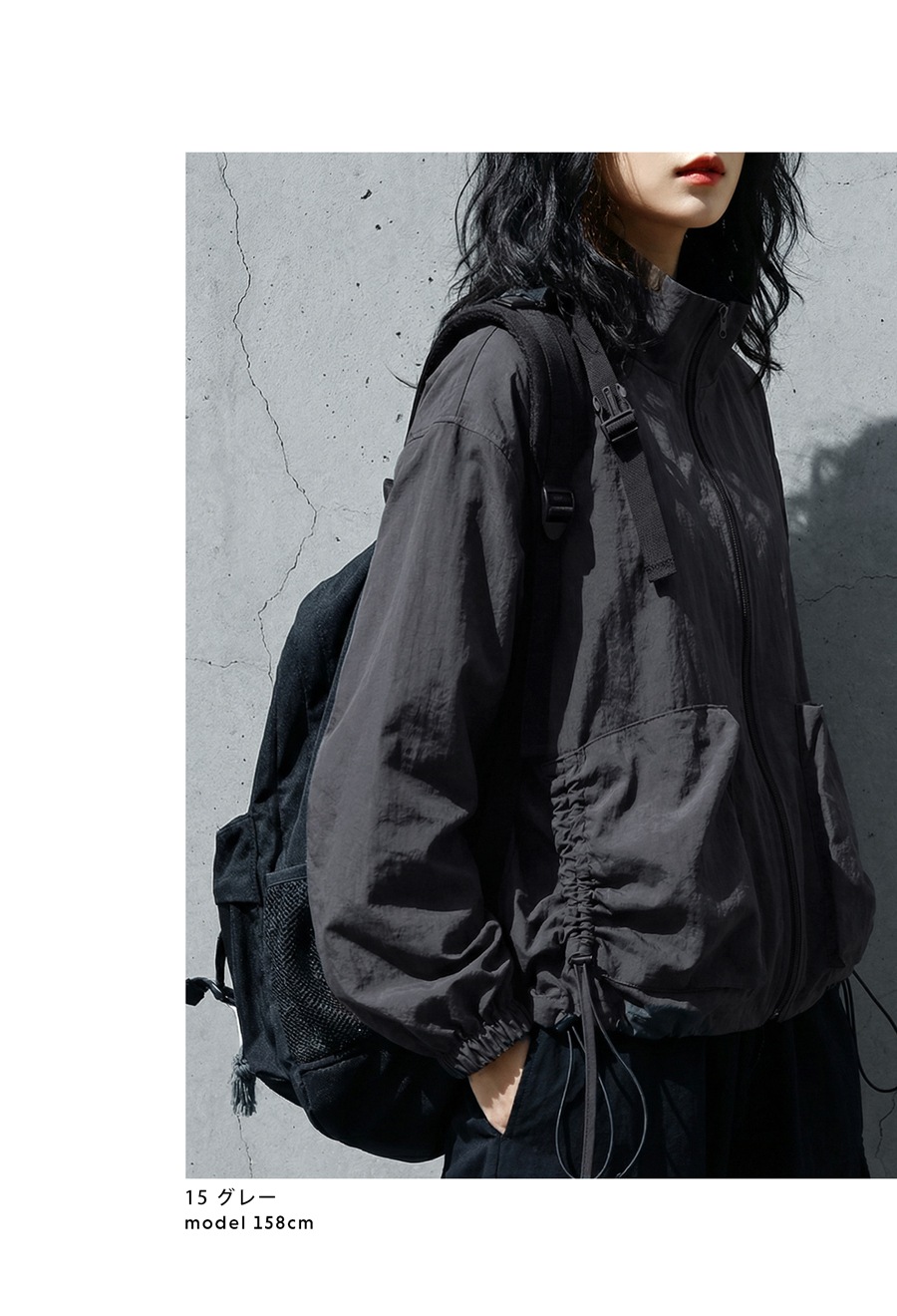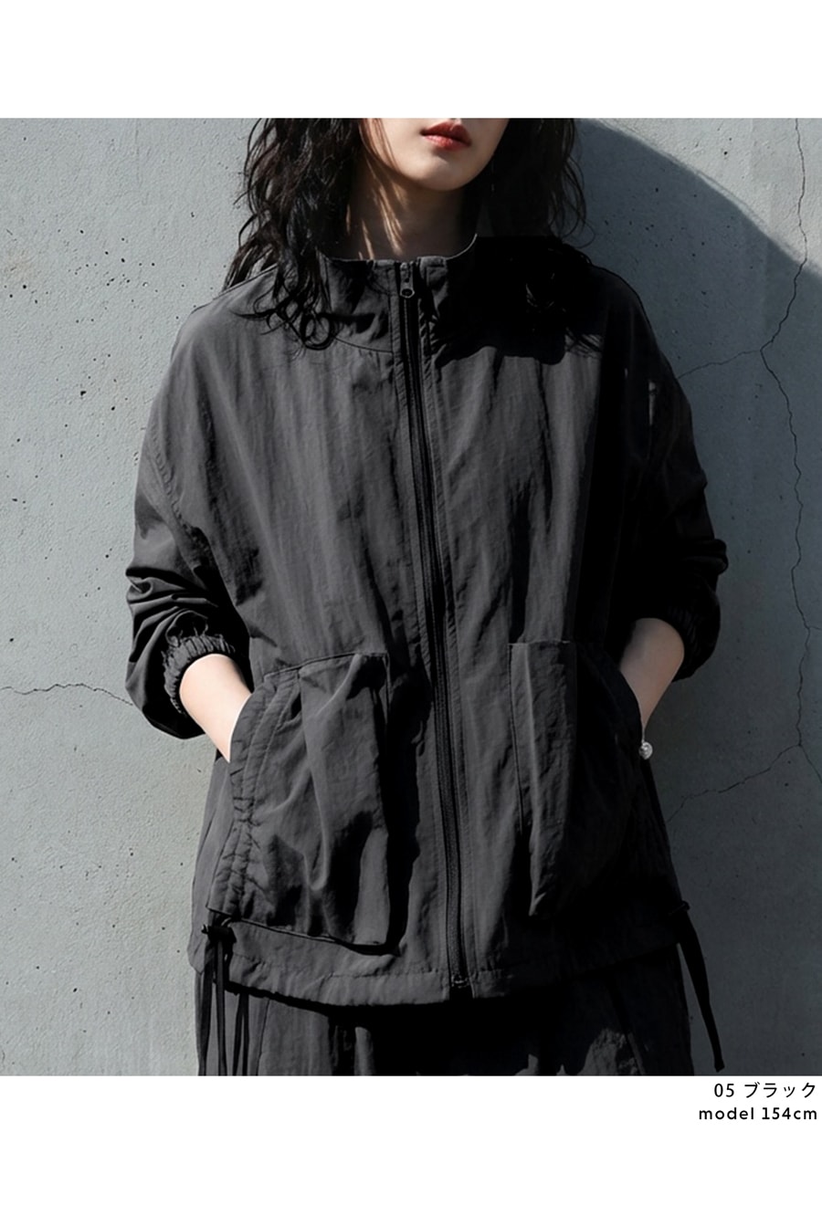 裾にはドローコードを配し、シルエットのアレンジも自在。キュッと絞って丸みのあるフォルムにも変化可能です。