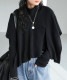 柔らかく肌に馴染むニット素材で仕立てた、クルーネックの長袖トップスとショート丈ベスト(ポンチョ)の2点セットです。