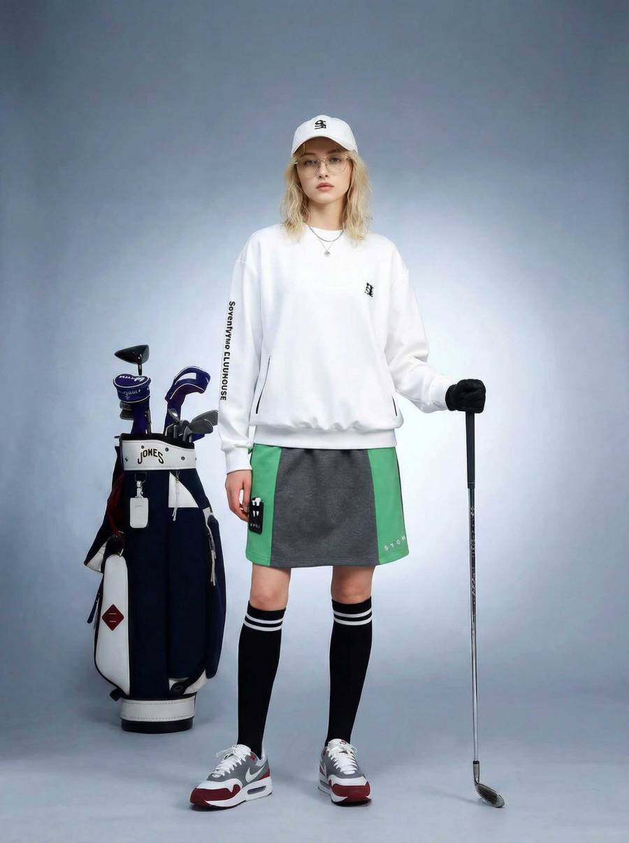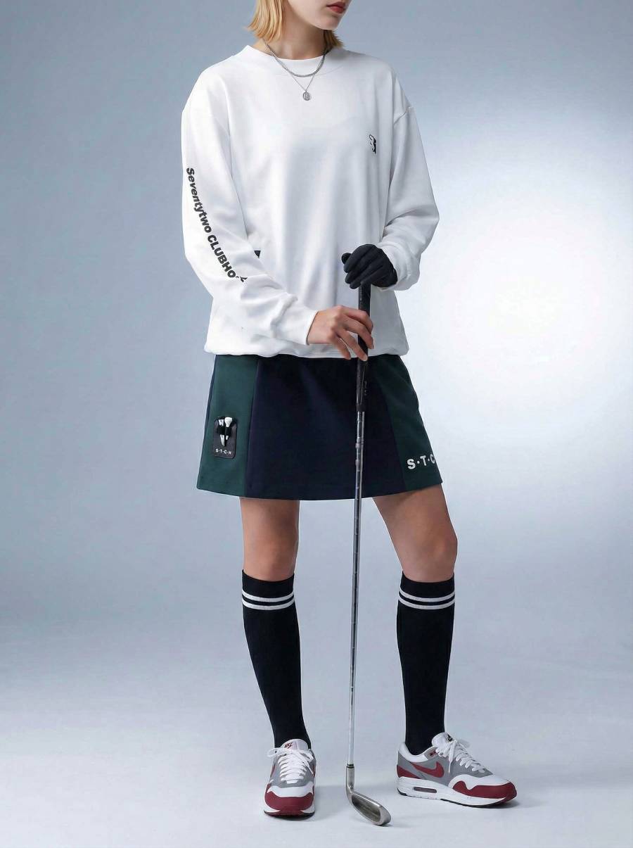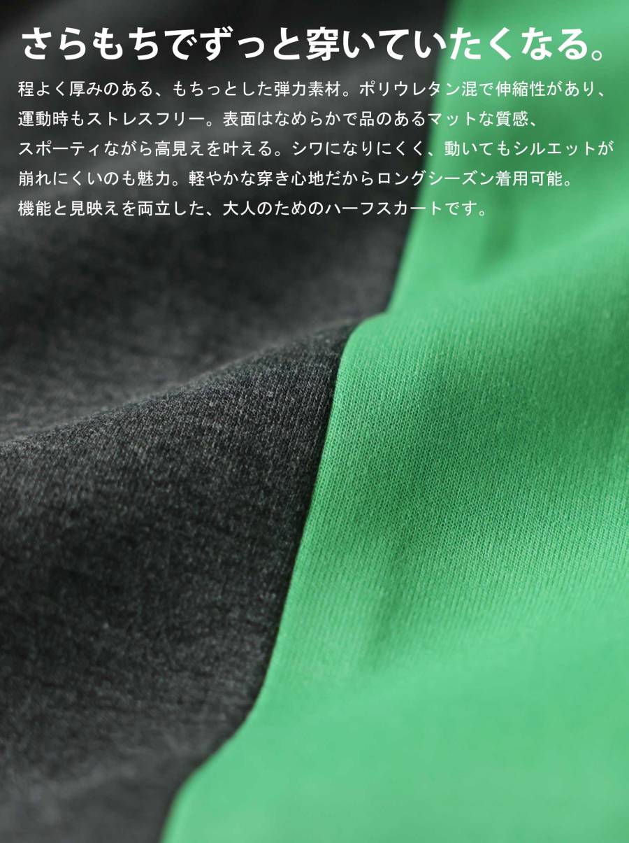 ショート丈の軽やかな丈感と程よく広がる形状が女性らしいシルエットを演出し、スポーツシーンでもきれいめな印象に仕上がります。