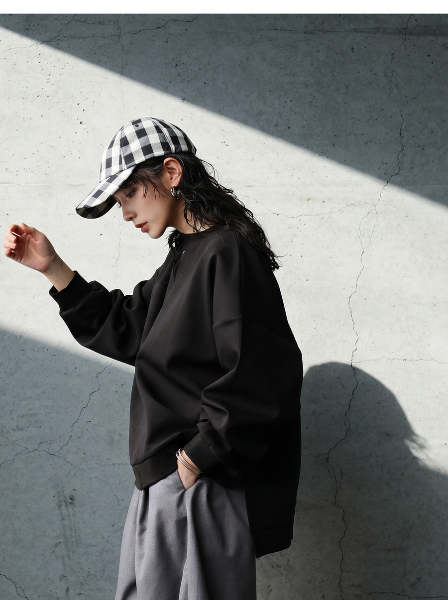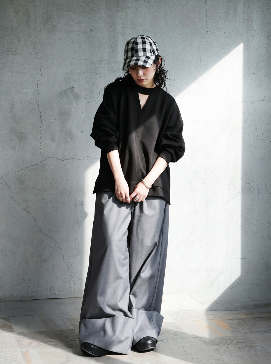 カジュアルからモードまで幅広いスタイリングに馴染み、シンプルながらレイヤードのアクセントとしても活躍します。