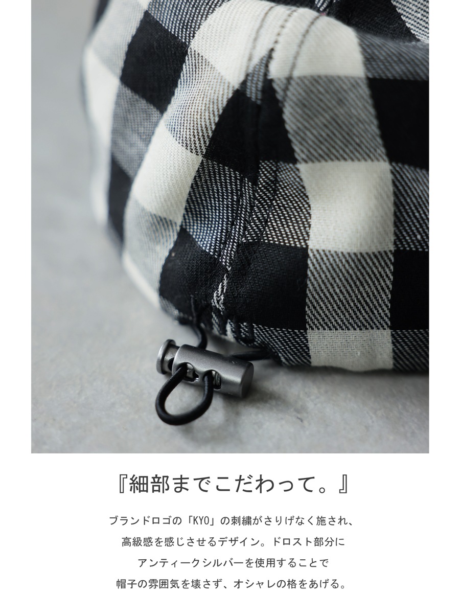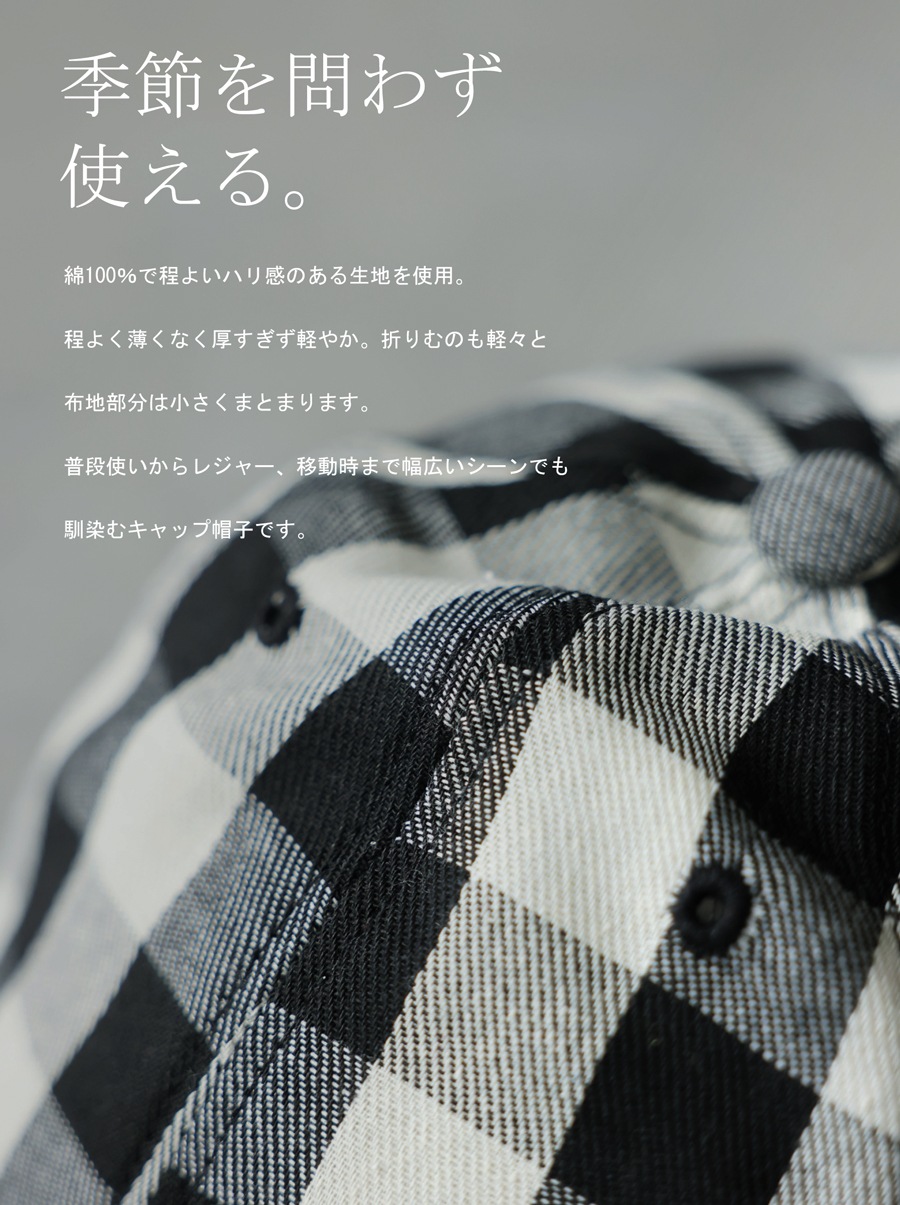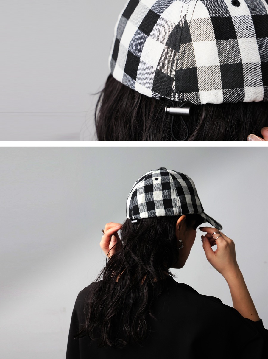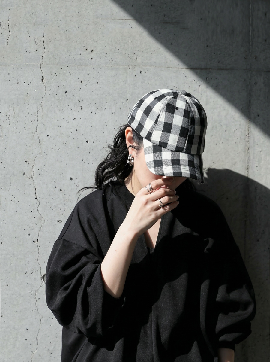 大きめのギンガムチェック柄が印象的なキャップは、コーデにさりげないアクセントを加える帽子です。