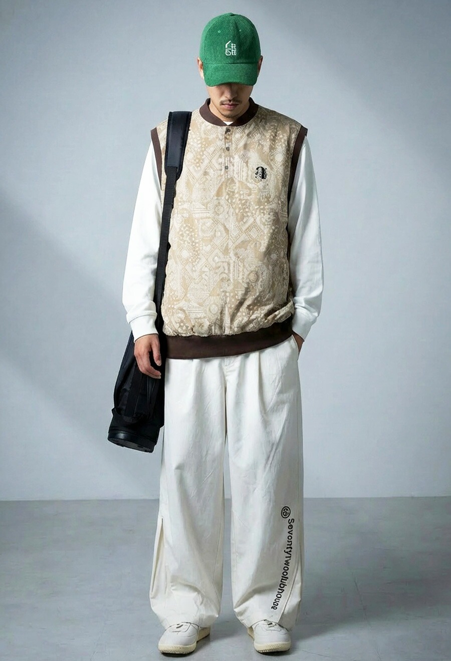 ロゴ刺繍がさりげないアクセントになり、スポーティながらも洗練された印象に。