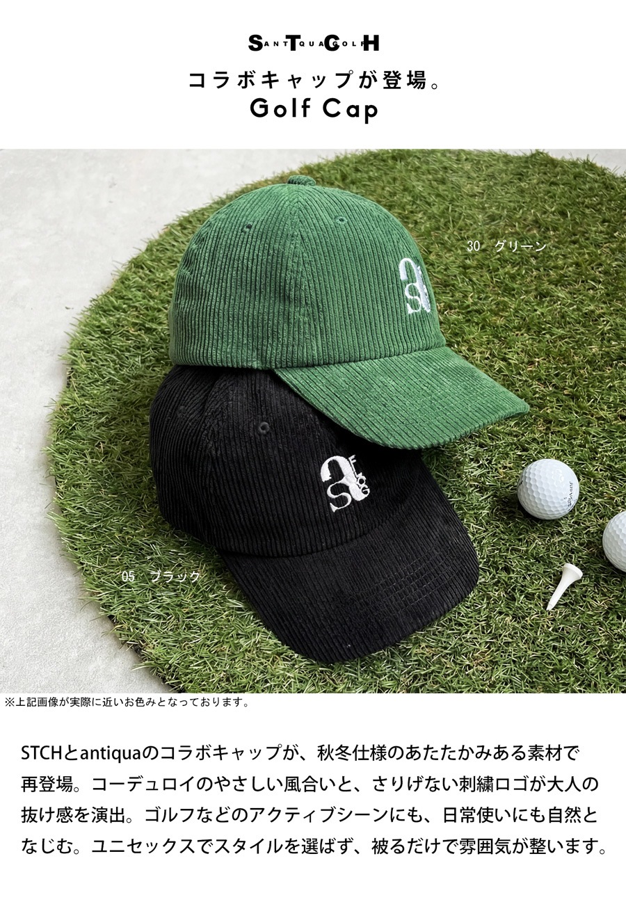 コースにも街にも馴染む、antiqua×STCHのコラボキャップ(帽子)が登場。