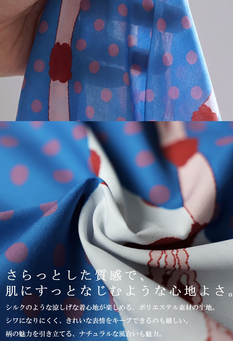 ポリエステル素材を使用し、シルクのようななめらかな肌ざわりが魅力です。