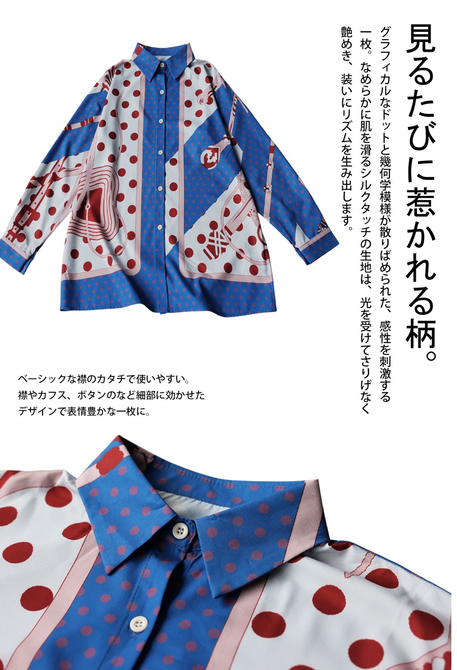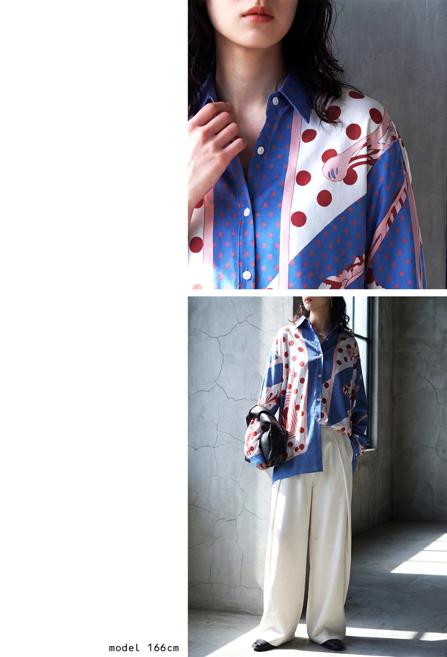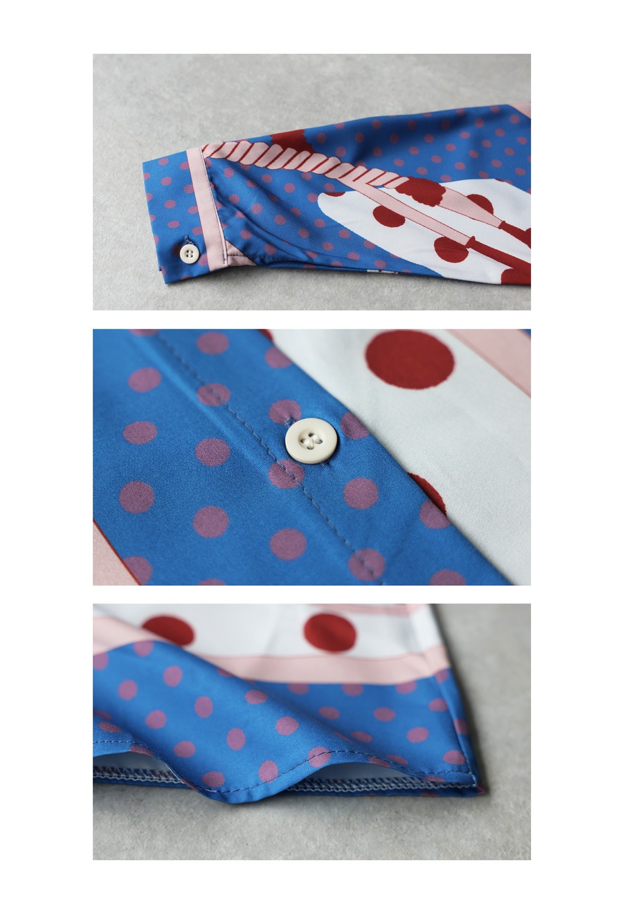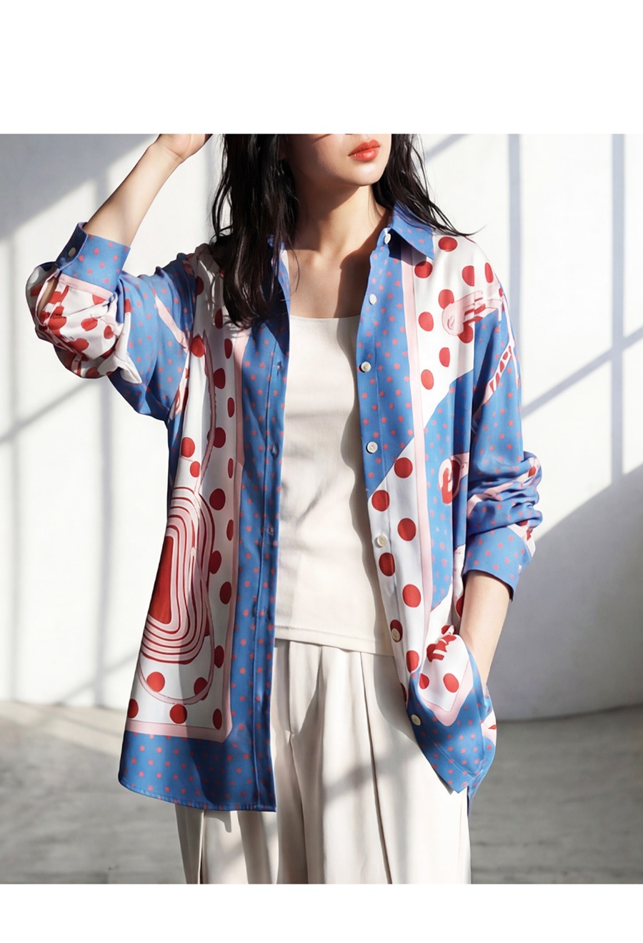 アート柄 ドット切替 シャツ レディース 長袖 前開き 送料無料・(50)メール便可
