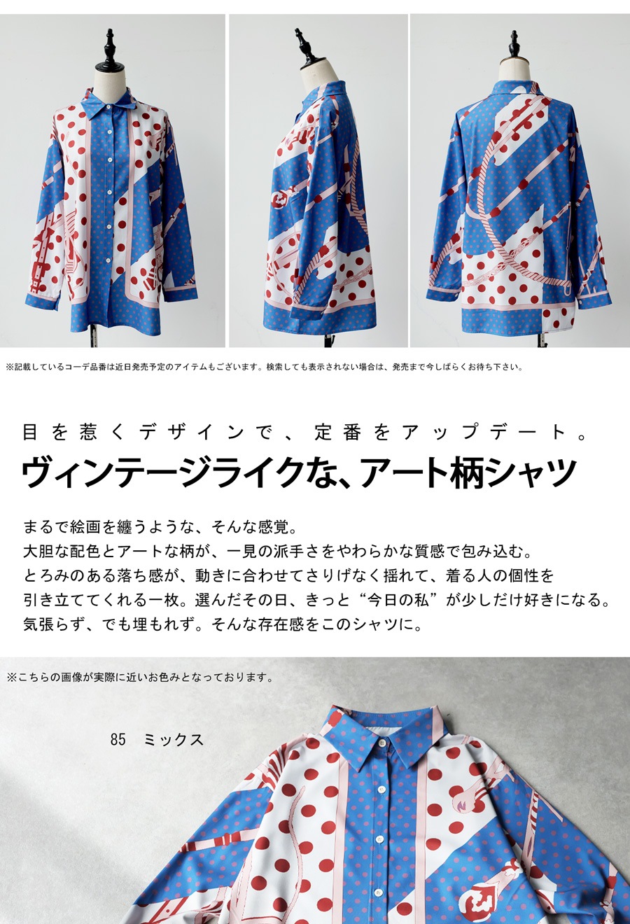 カラーは遊び心あるアートミックス(ミックス・MIX・マルチ)展開で、コーデの主役になる一着です。