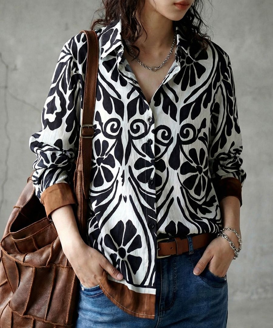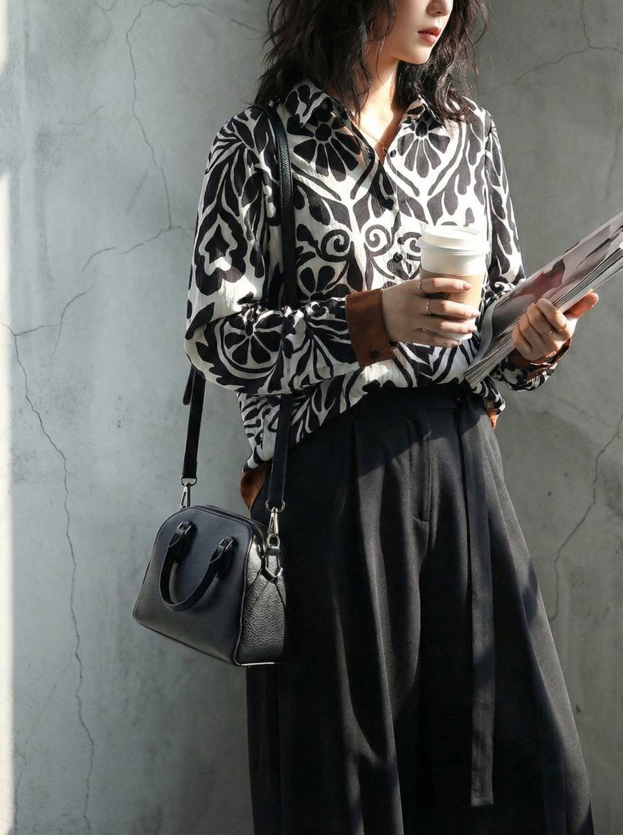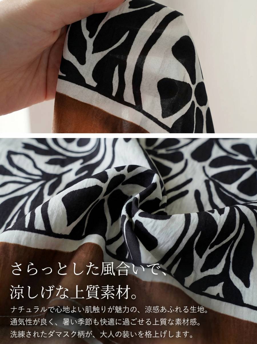 大胆なダマスクとボタニカル柄を掛け合わせたモノトーンデザインが、上品さと存在感を両立させます。
