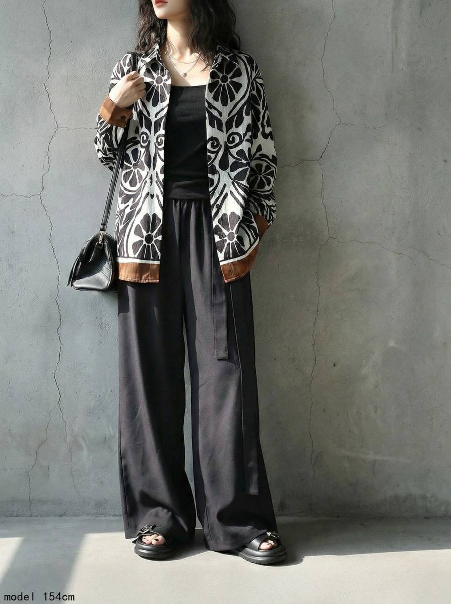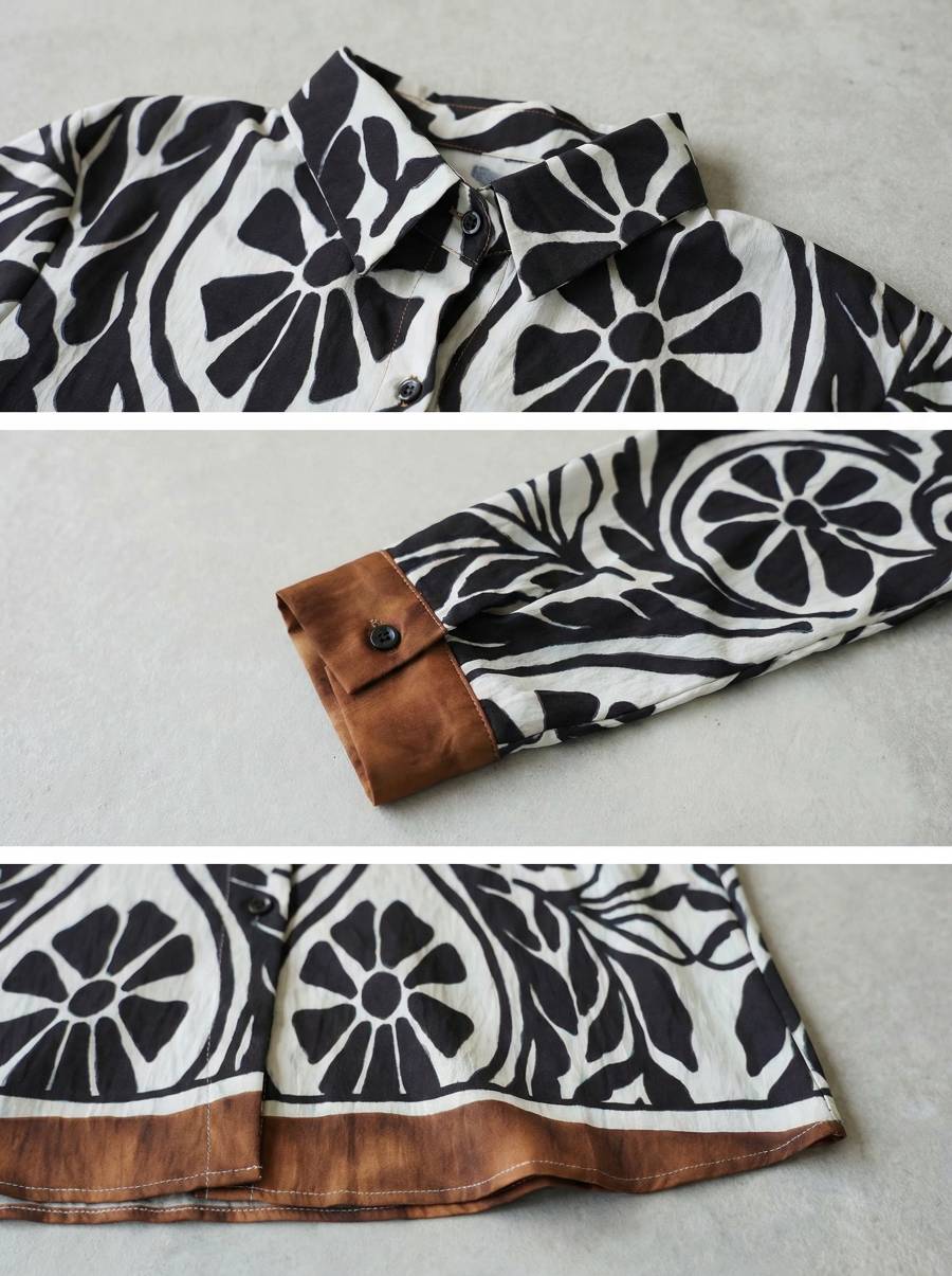 ゆったりとしたシルエットと程よい丈感で体型カバーを叶え、自然な着痩せ効果も期待できる柄シャツです。