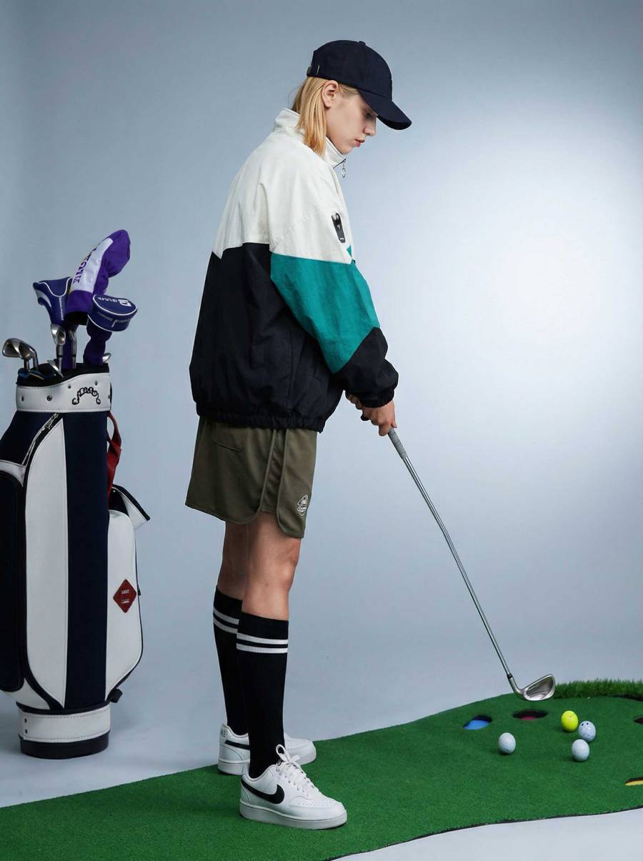 ヒップにかかるほどよい丈感とゆとりのある形状でレイヤードもしやすく、パンツスタイルはもちろんメンズのゴルフパンツとも好相性。