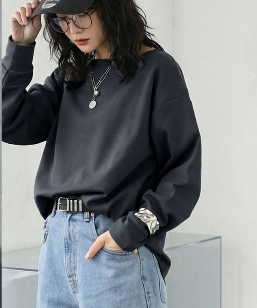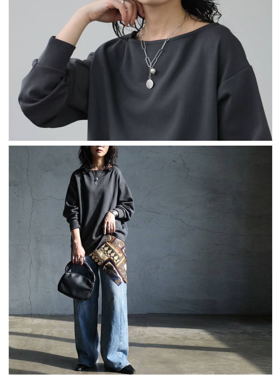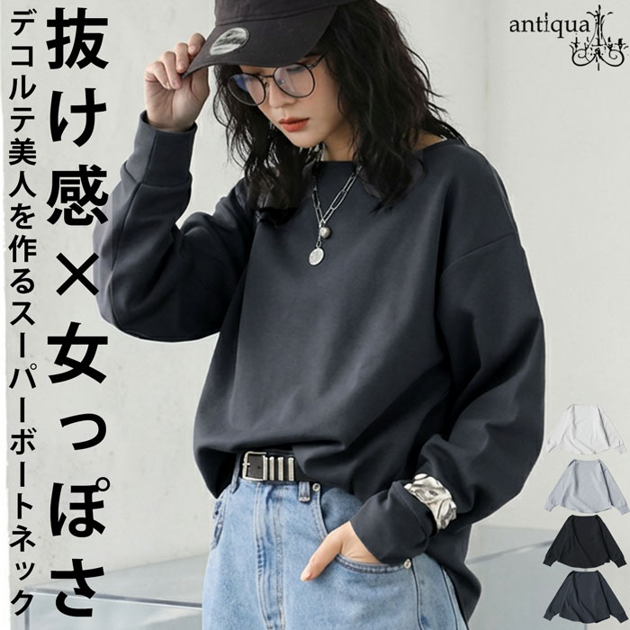 一枚で、垢抜ける。プルオーバー レディース 長袖 ボートネック トップス 無地・(80)メール便可