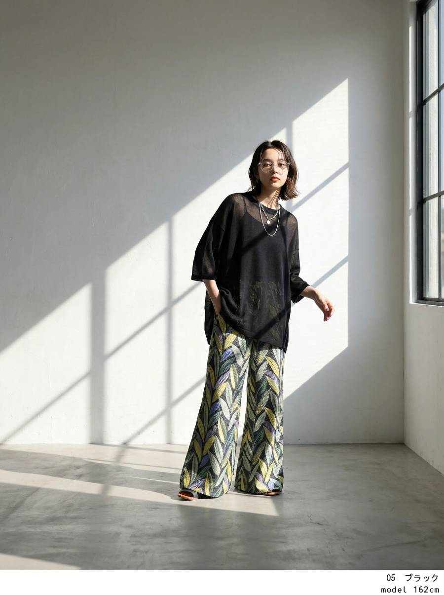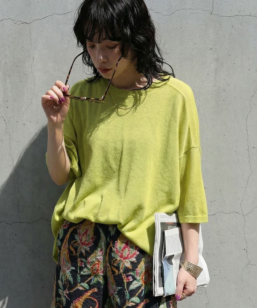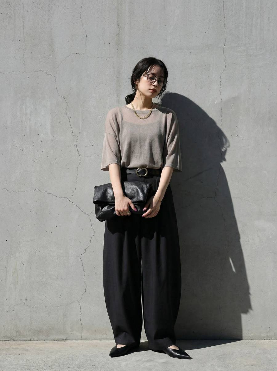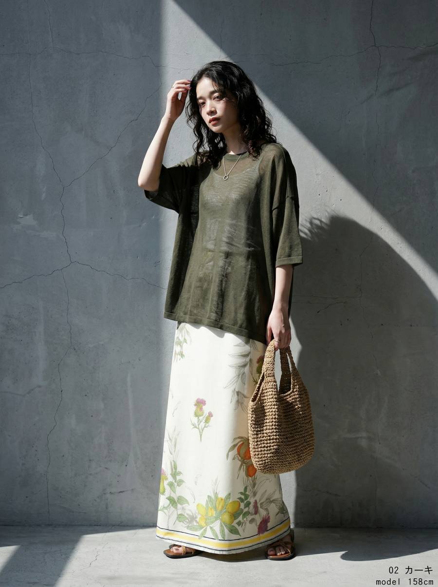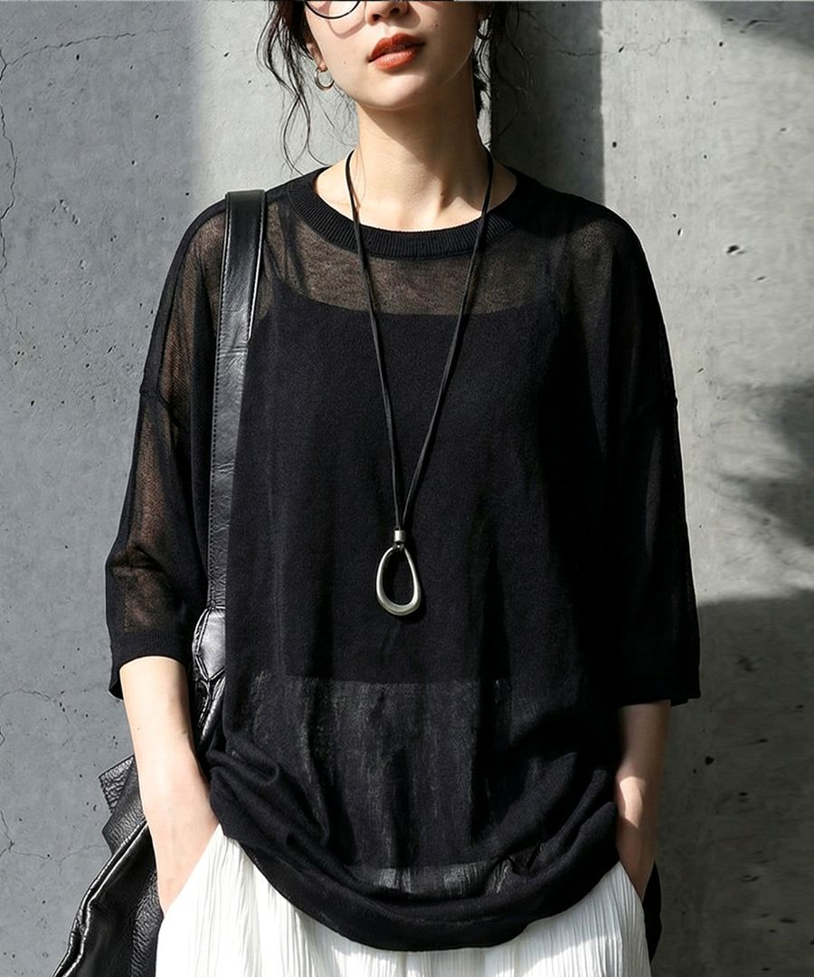 ハイゲージで丁寧に編み上げた生地が、繊細な透け感と軽やかな着心地を叶え、抜け感のある上品な印象に仕上げます。