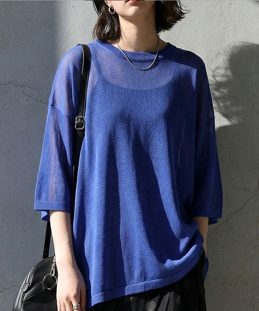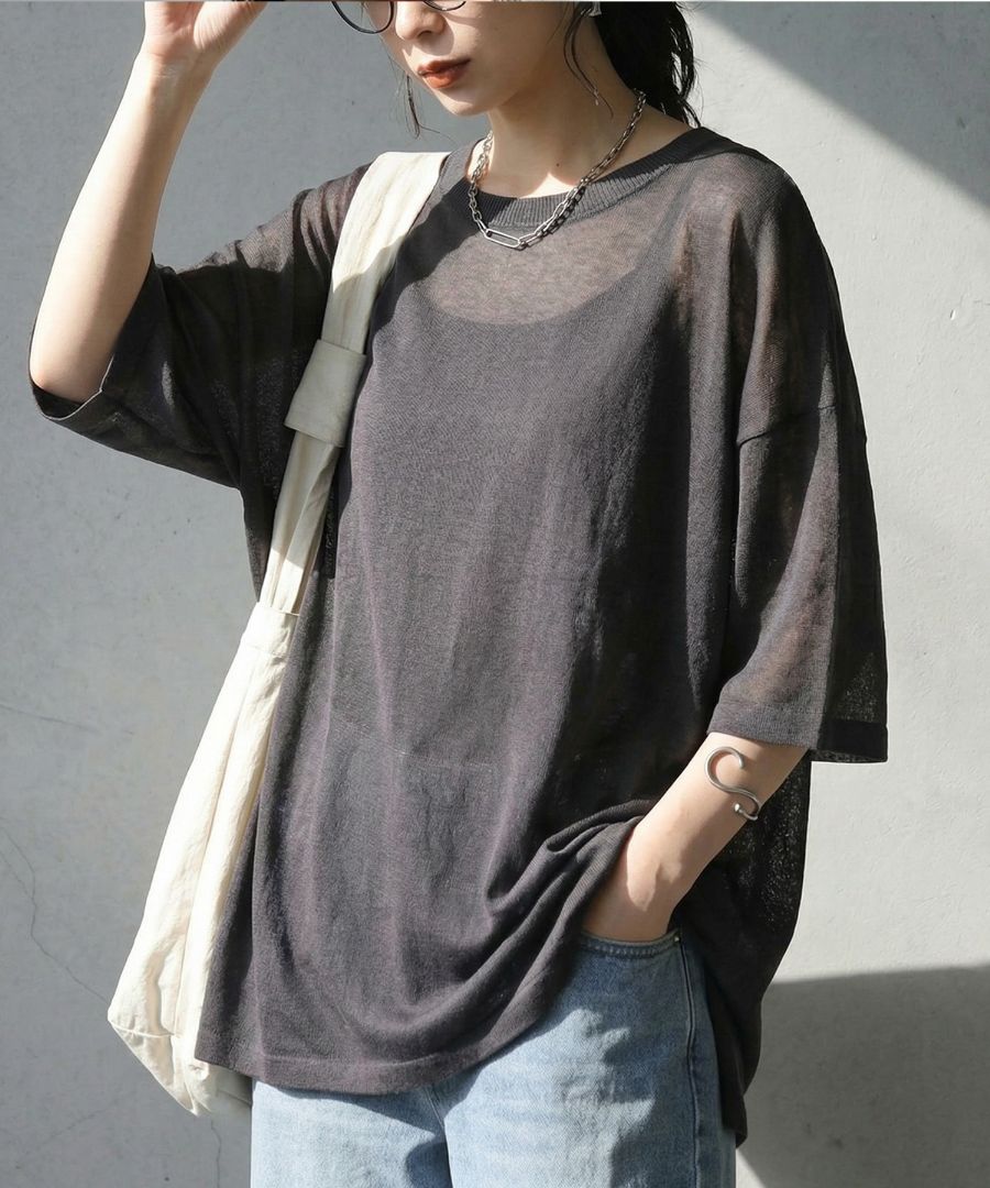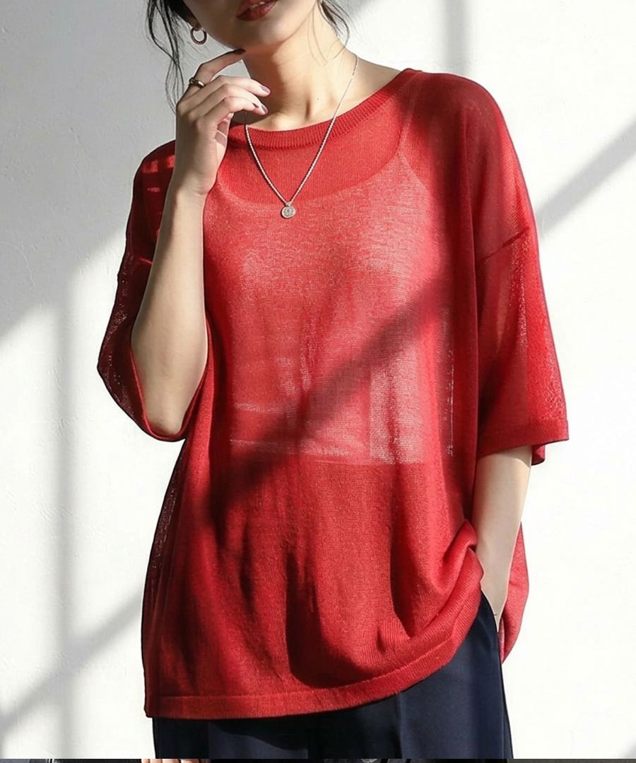 シンプルながら上質さを感じる、シアーニット(サマーニット・半袖ニット・プルオーバー)です。