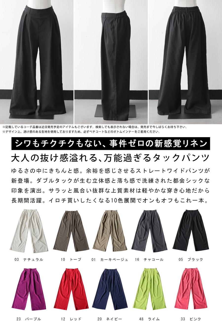 【カラー】ブラック/チャコール/トープ/ネイビー/ピンク/レッド/ライム/ナチュラル/カーキベージュ/パープル