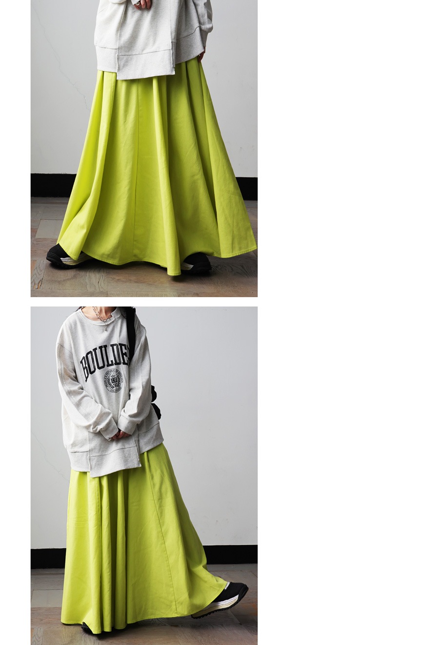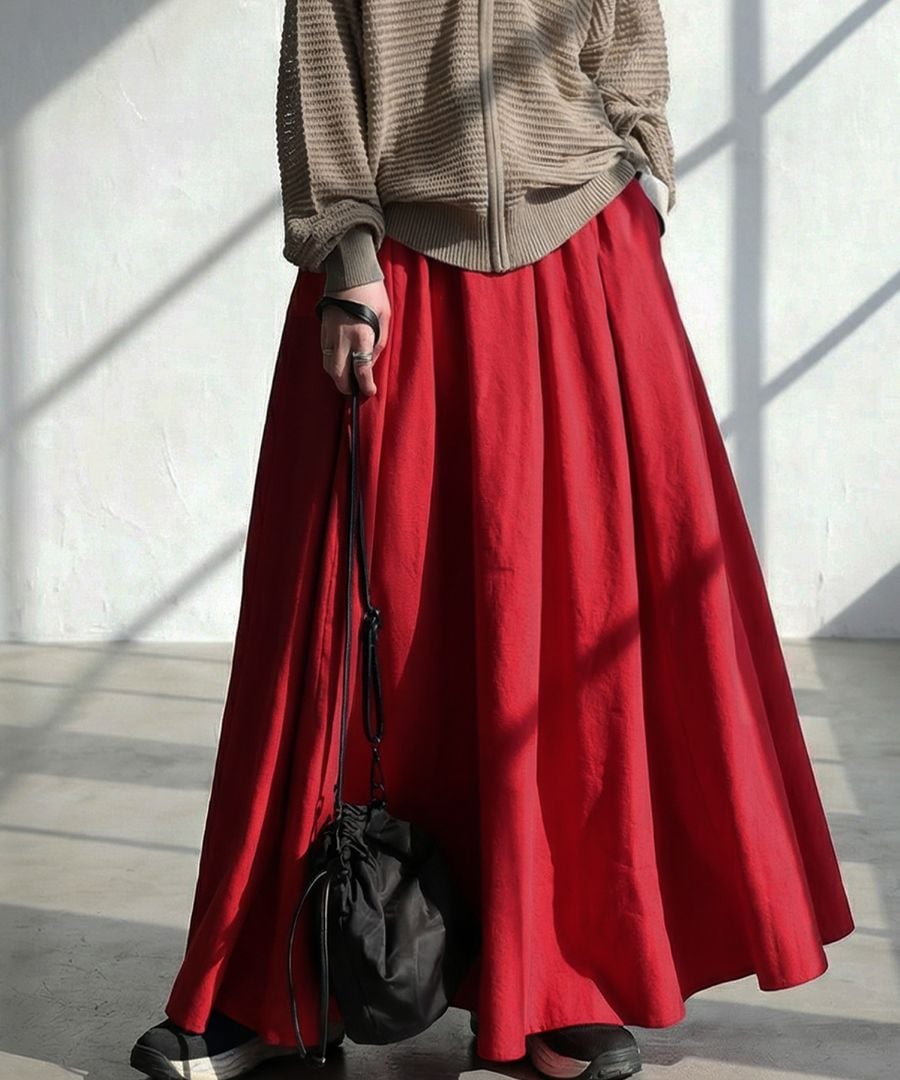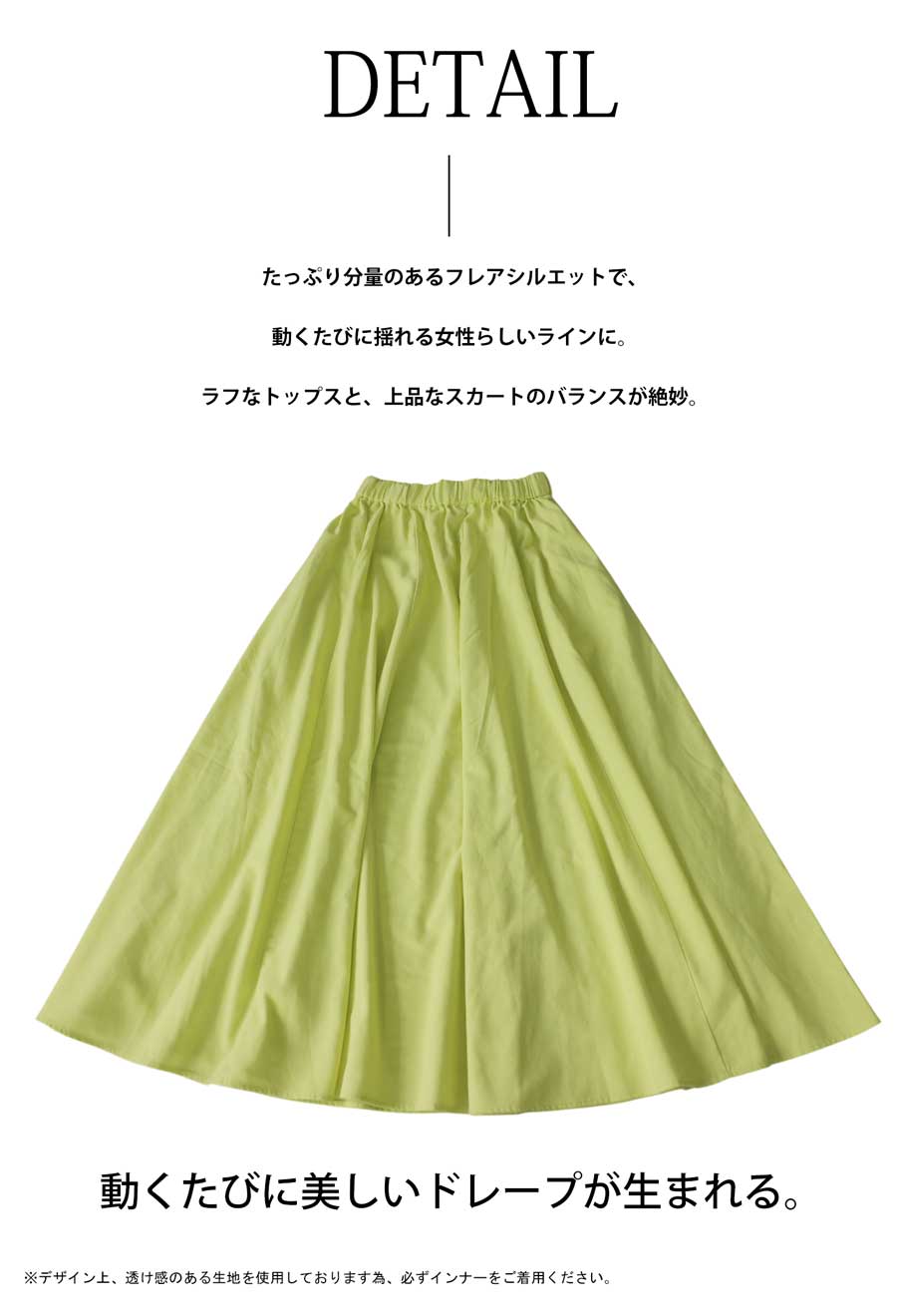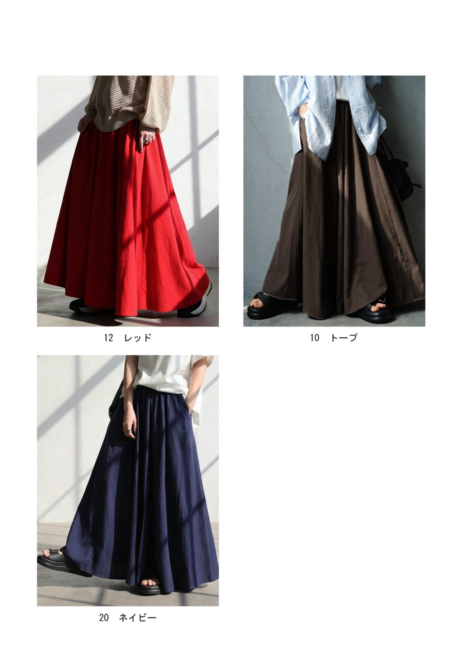 生地をたっぷりと使用し、美しく広がるAラインシルエットが印象的なリネン混素材のロングスカートです。