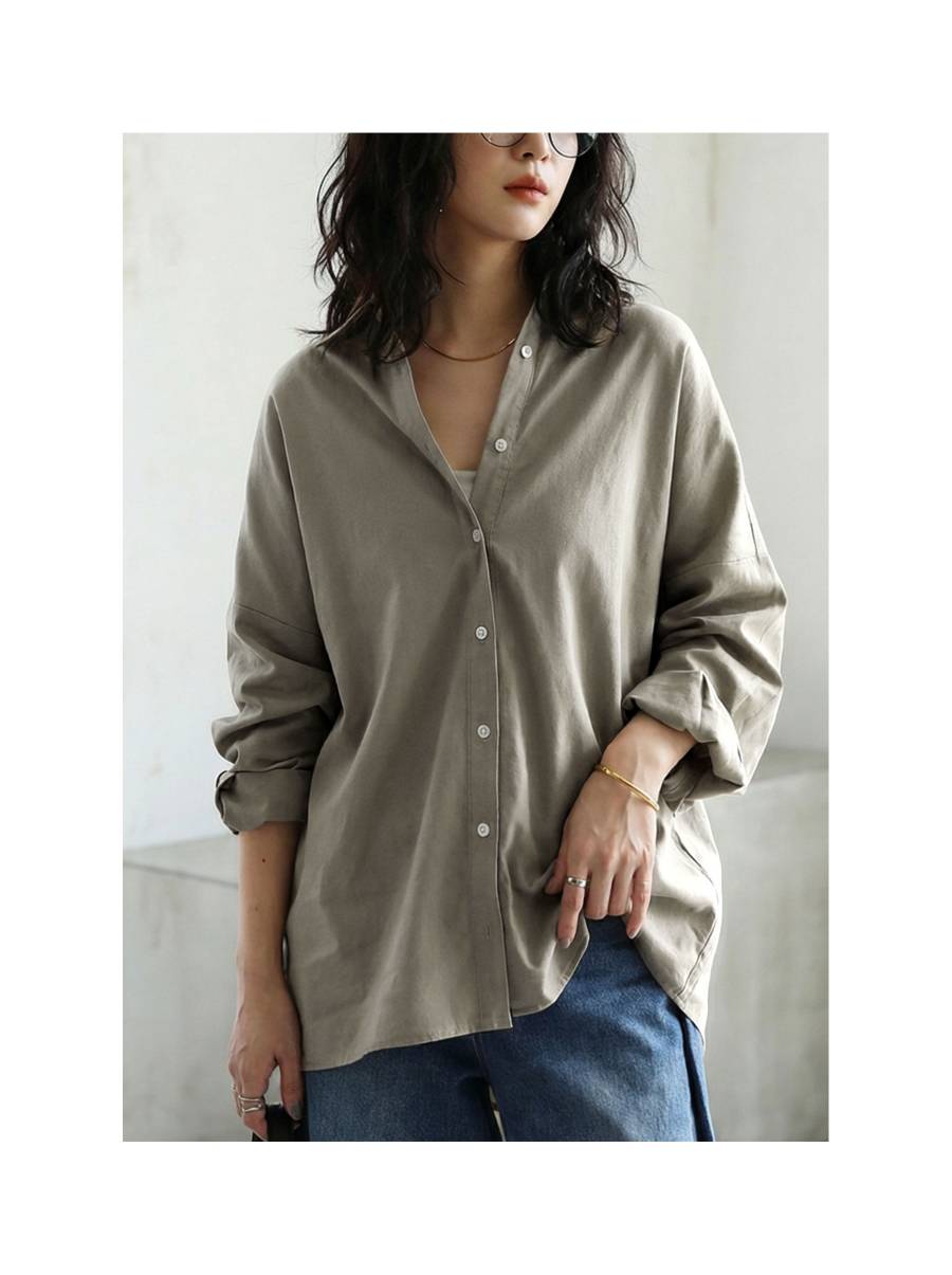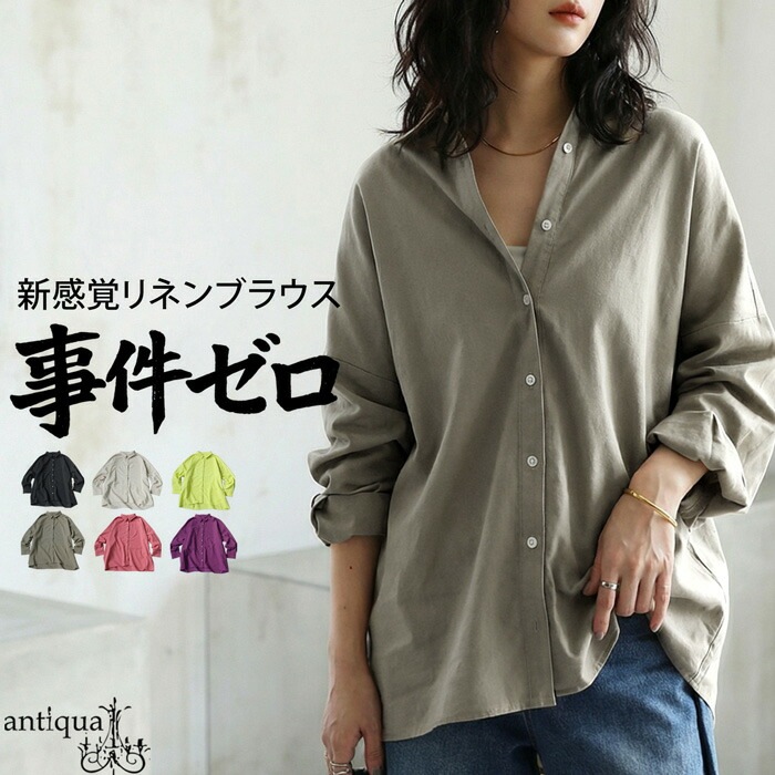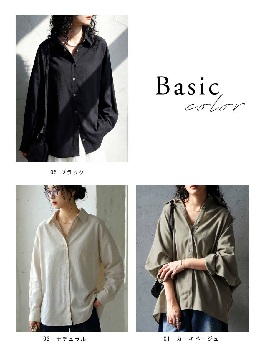 羽織るだけで完成形。リネン混 シャツ レディース 長袖 無地 羽織り 送料無料・(500)メール便可