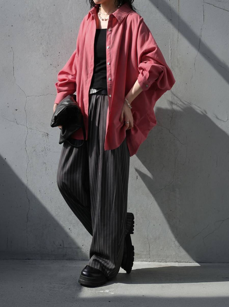 ゆったりとしたオーバーサイズのビッグシルエットが身体のラインを拾いにくく、自然に体型カバーと着痩せを叶えます。