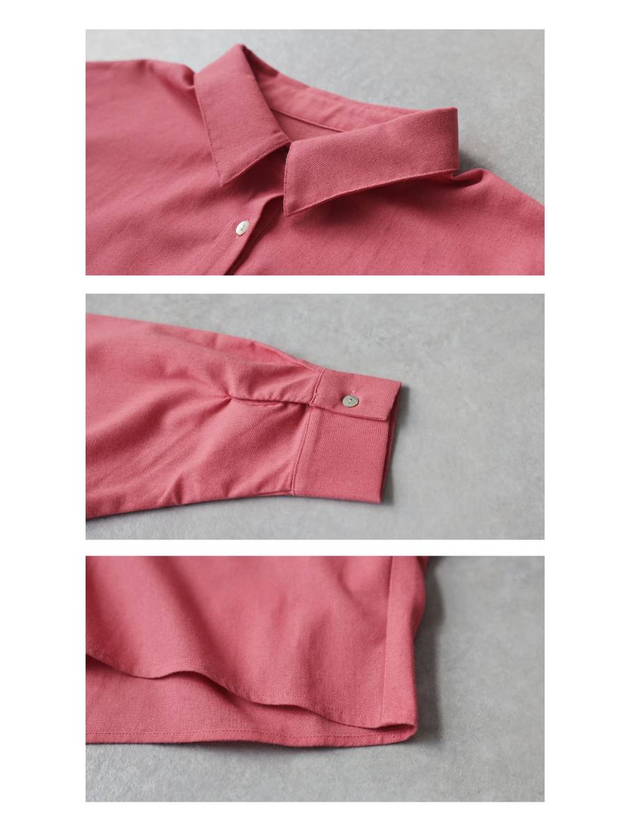 ネックラインはすっきりとしたレギュラーカラーで、きれいめにも馴染むデザインに仕上げました。