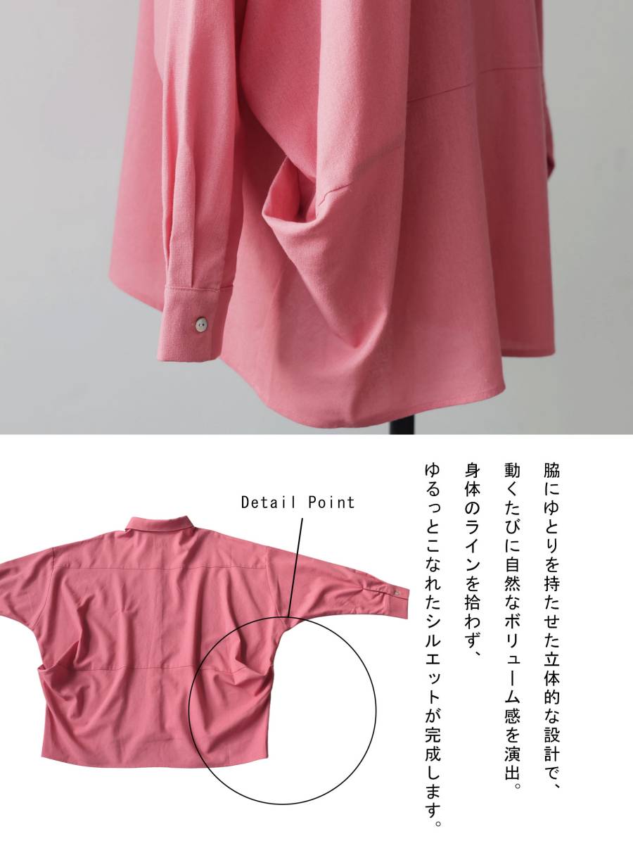 前後差のある丈感で、インせずそのまま着てもバランス良く決まるブラウスです。