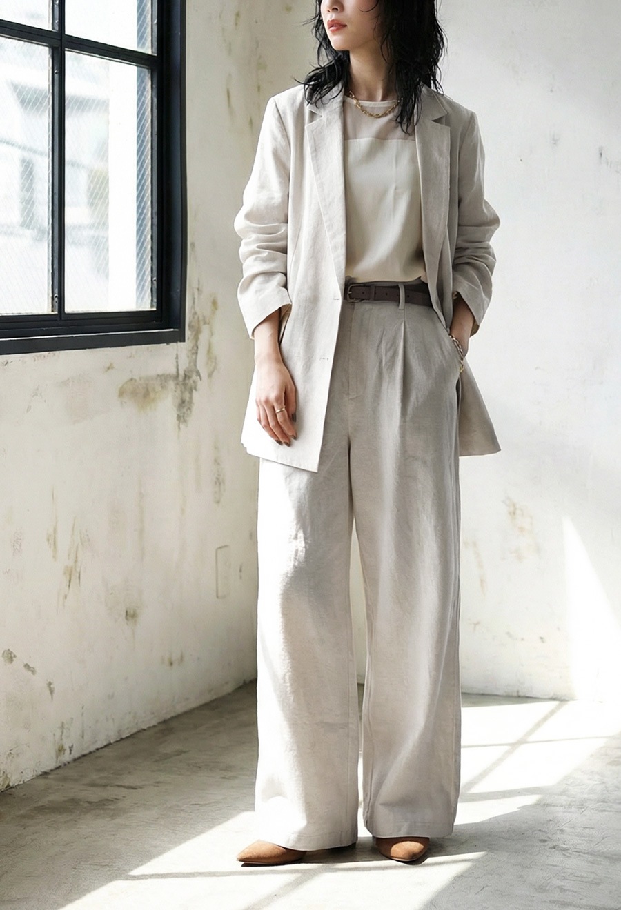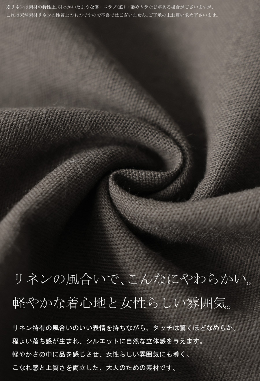 カラーはナチュラル(生成り・きなり・Ecru)、トープ(グレージュ・Greige)、チャコール(墨黒・Charcoal)、ブラック(黒・くろ・Black)の4色展開で、さまざまなシーンに品よく寄り添う一着です。