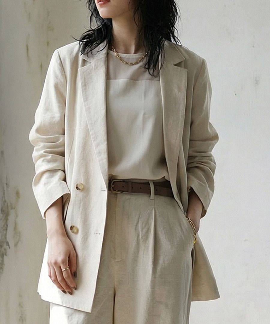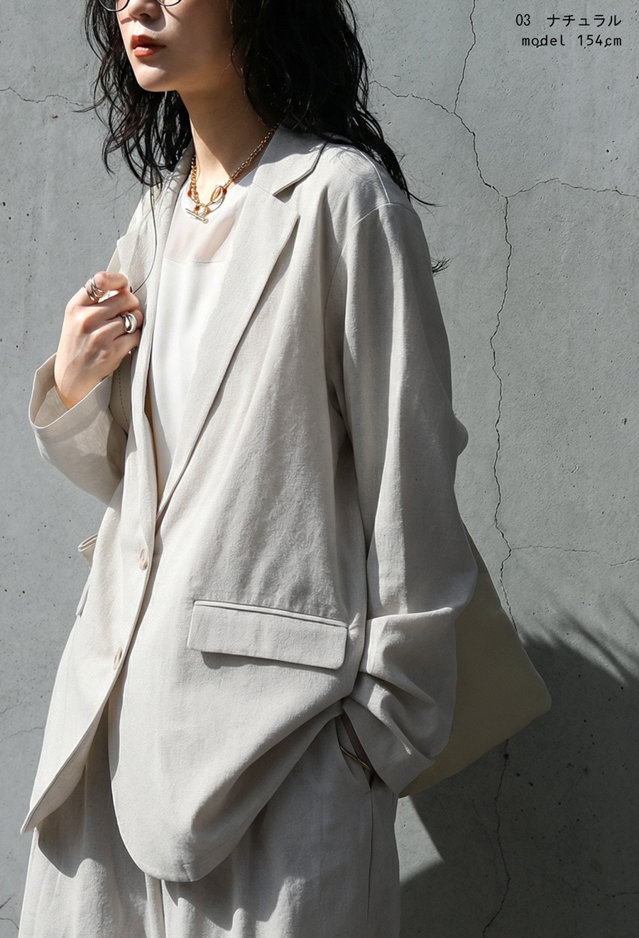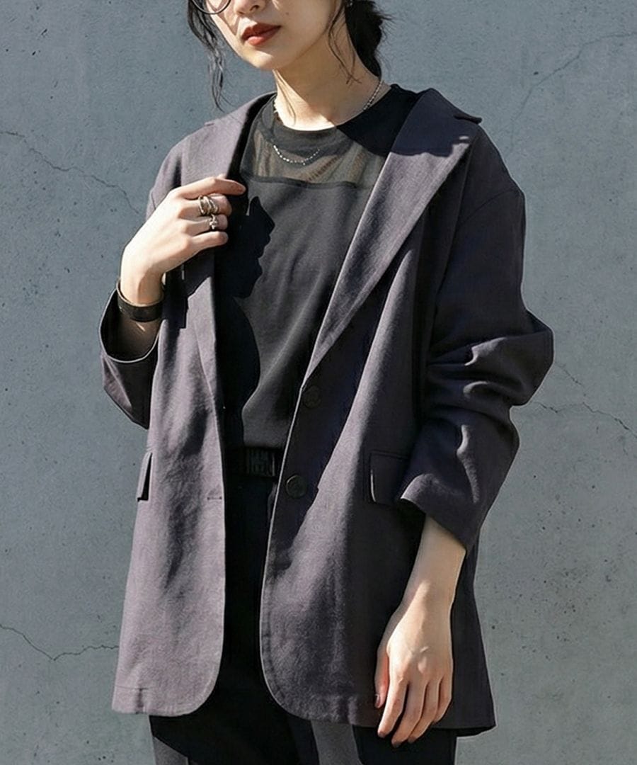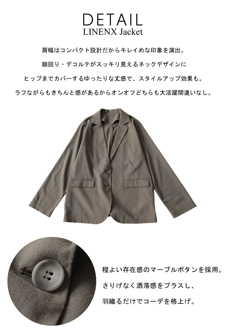 リネン(麻)ブレンドの柔らかな風合いを活かしたテーラードジャケットです。