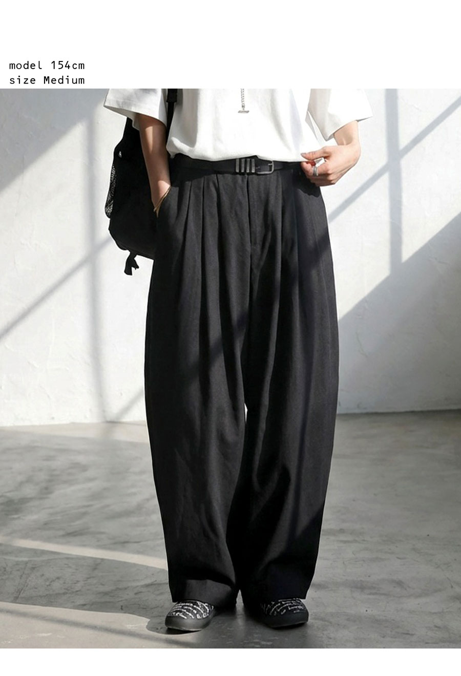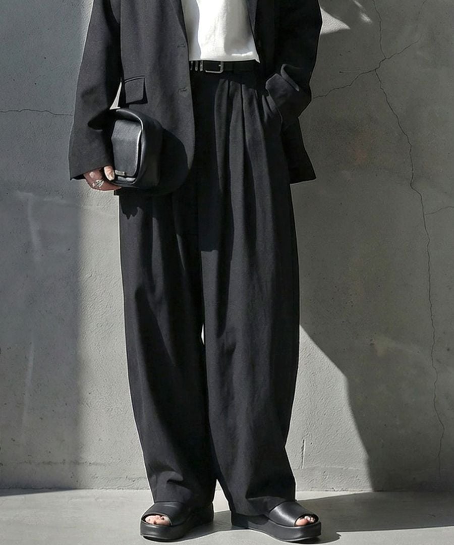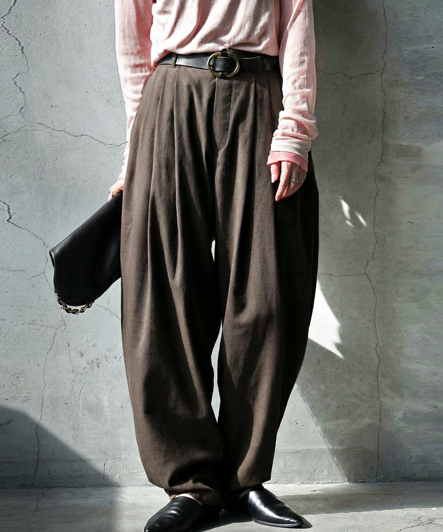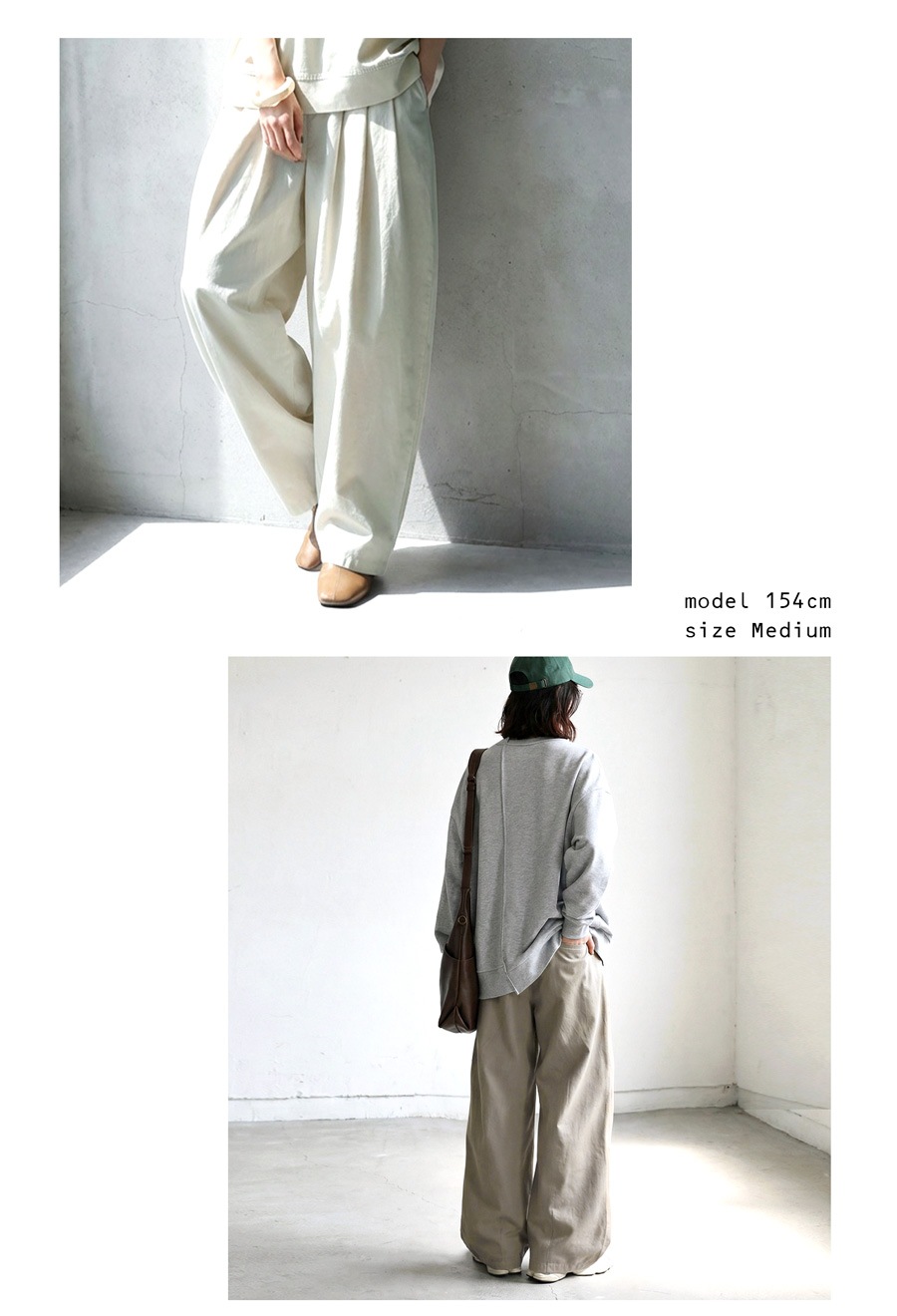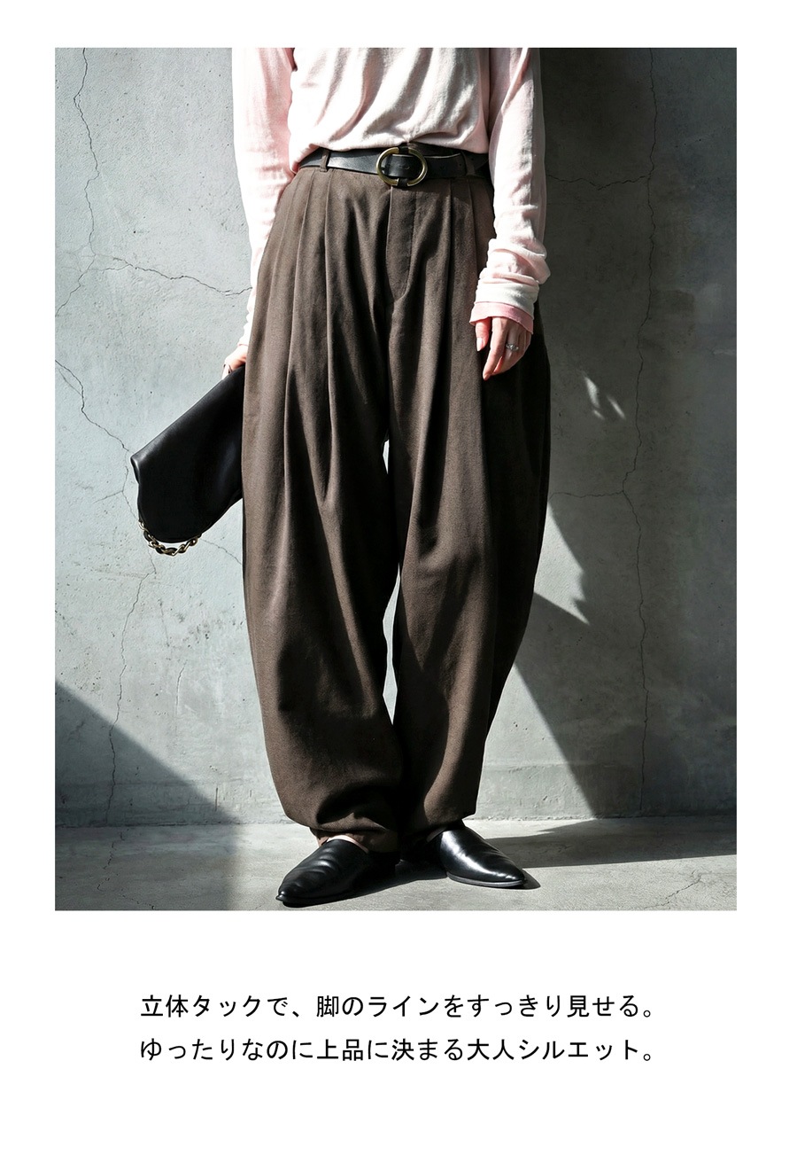 ベルトループ付きでスタイリング幅も広がり、ワイドながら重たく見えないボリューム感が魅力です。