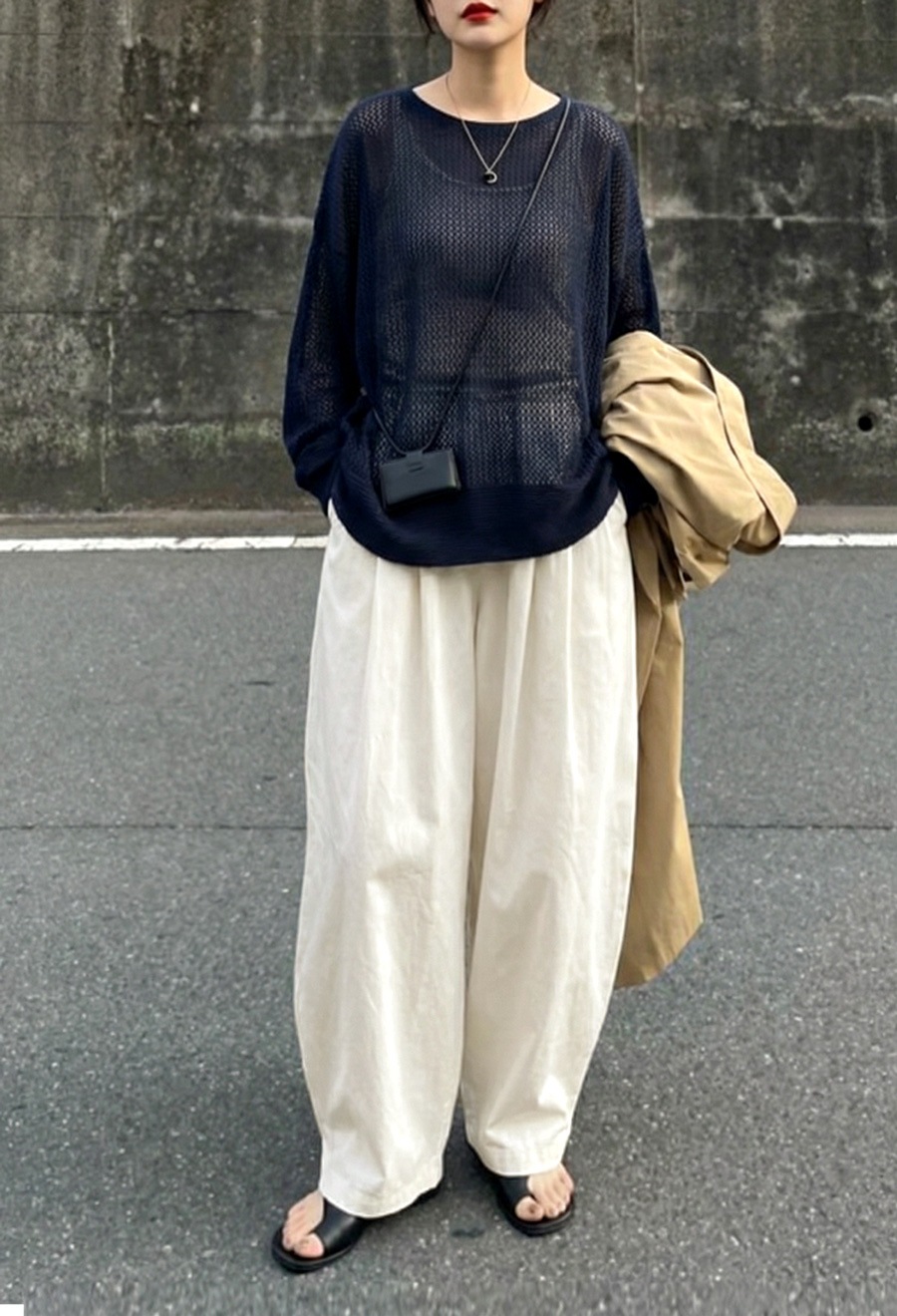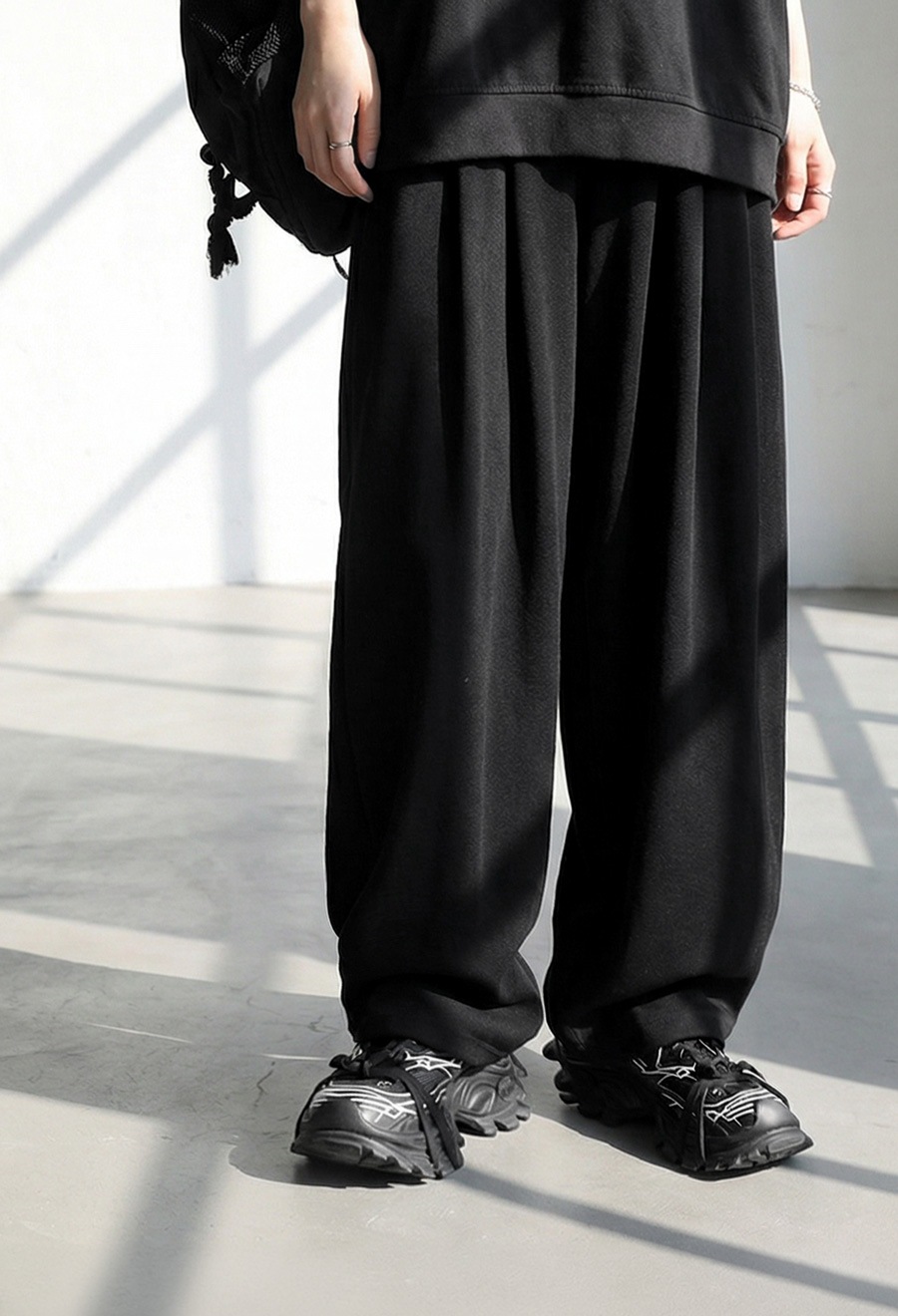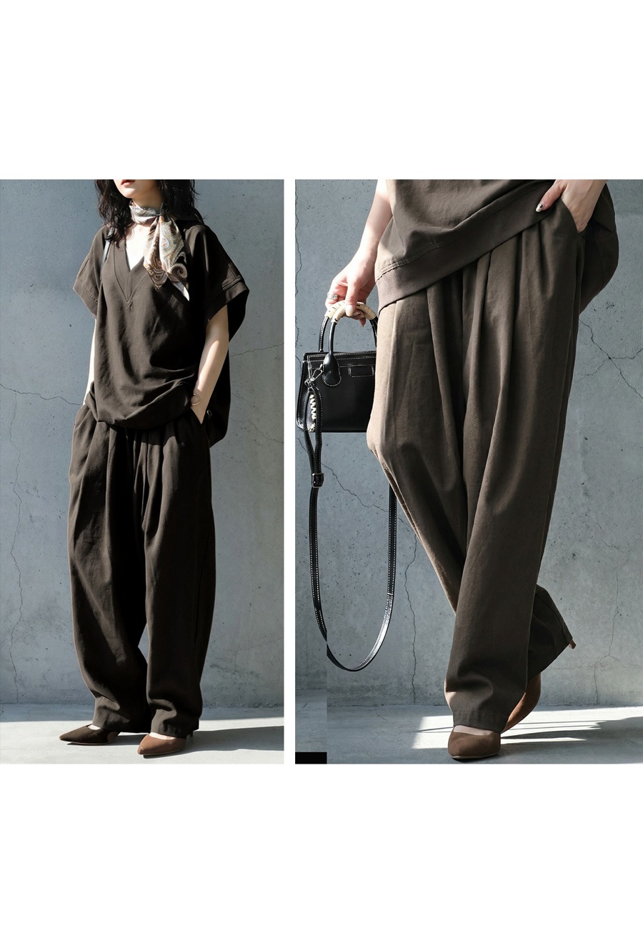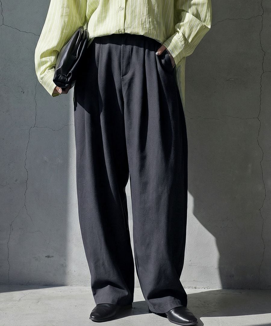 ベルトループ付きでスタイリング幅も広がり、ワイドながら重たく見えないボリューム感が魅力です。