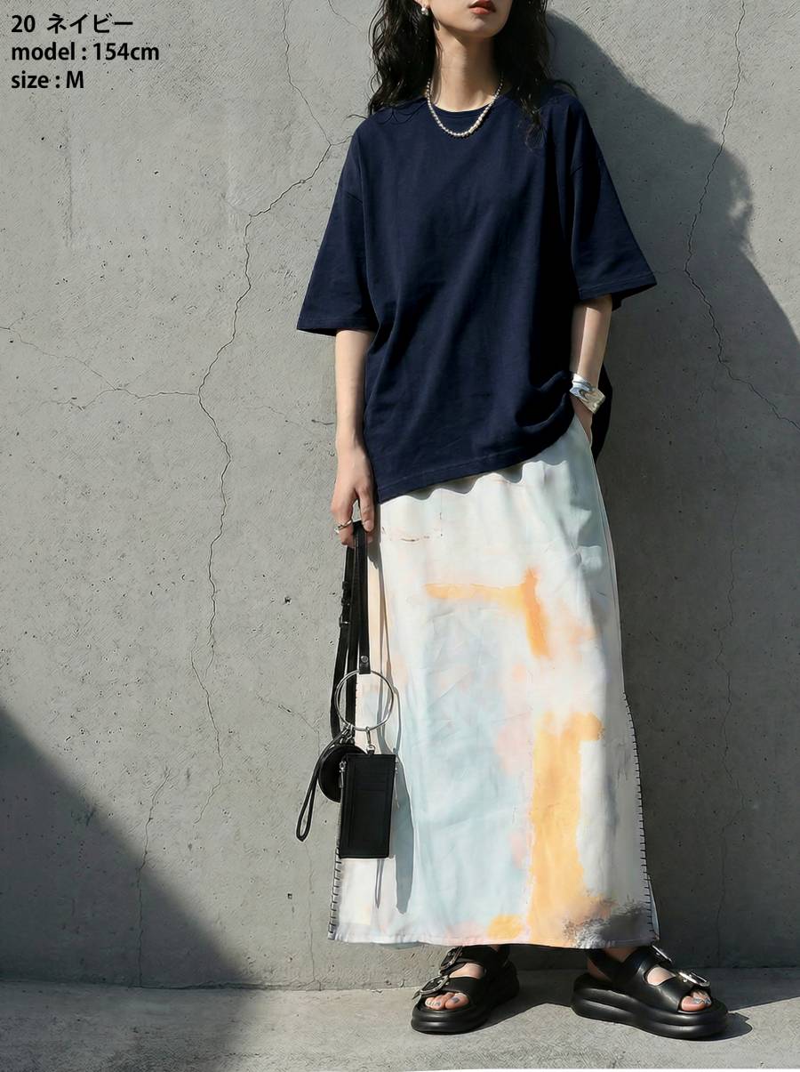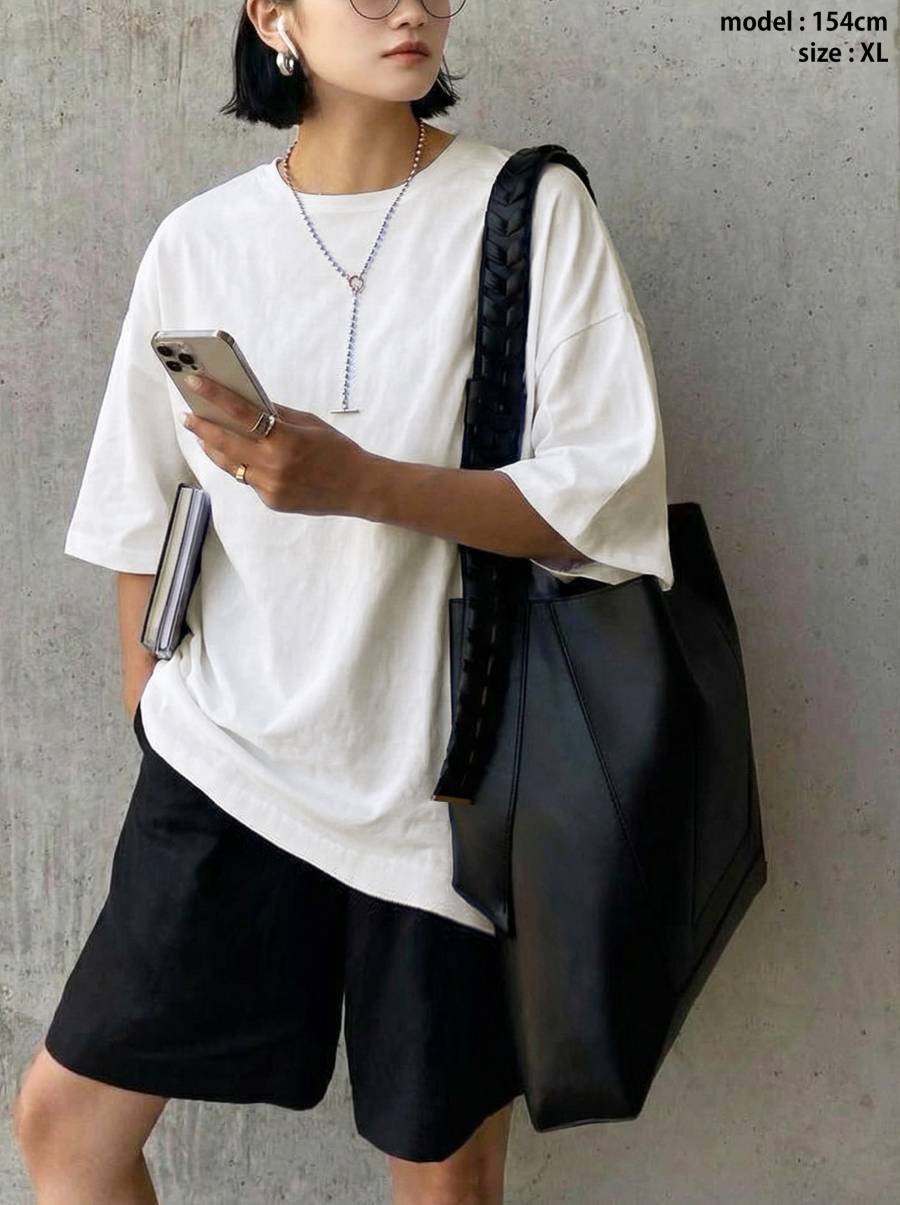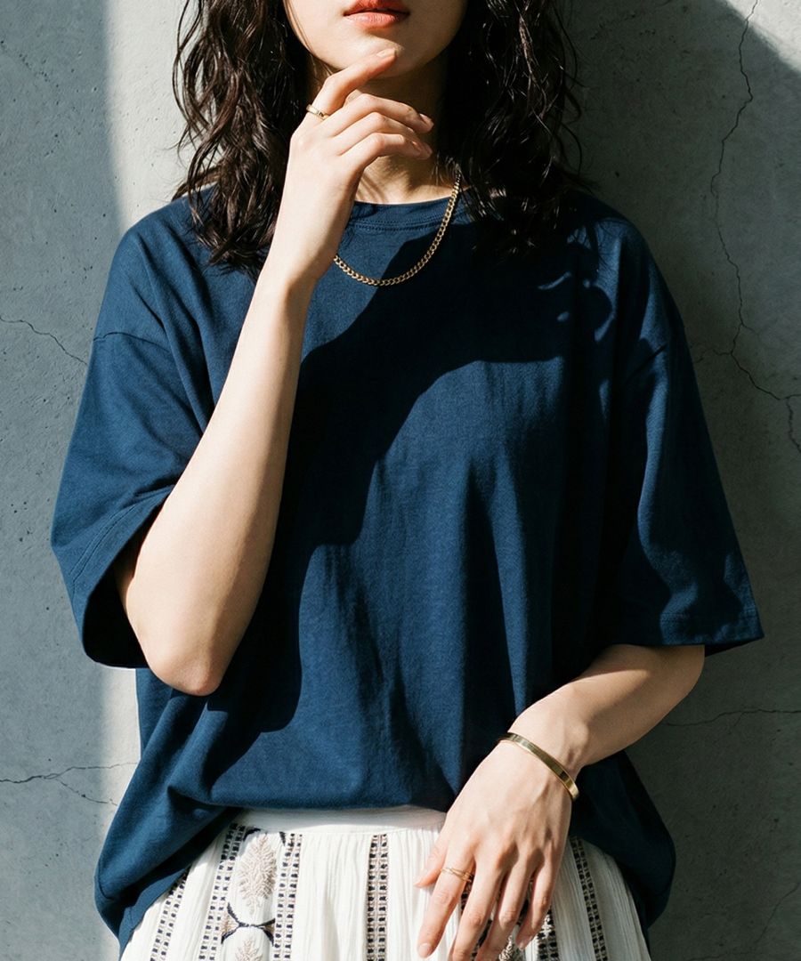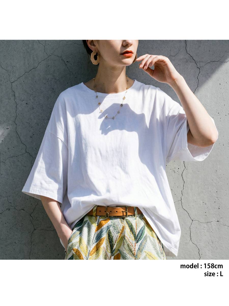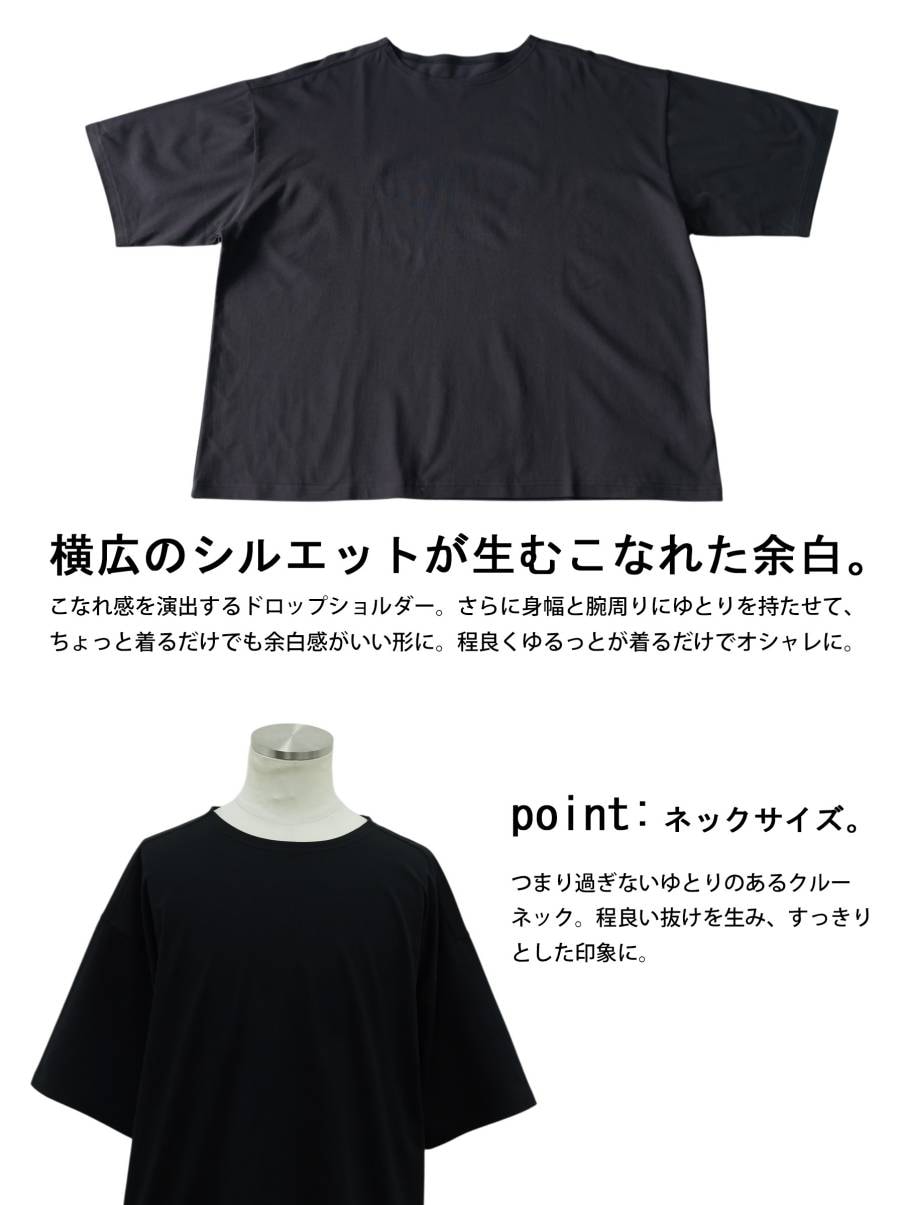 ゆったりとした形状と横に広がるシルエットで身体のラインを拾いにくく、体型カバーも叶える一枚です。