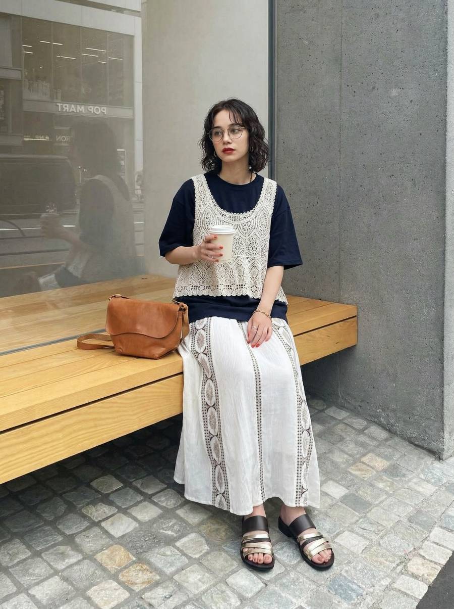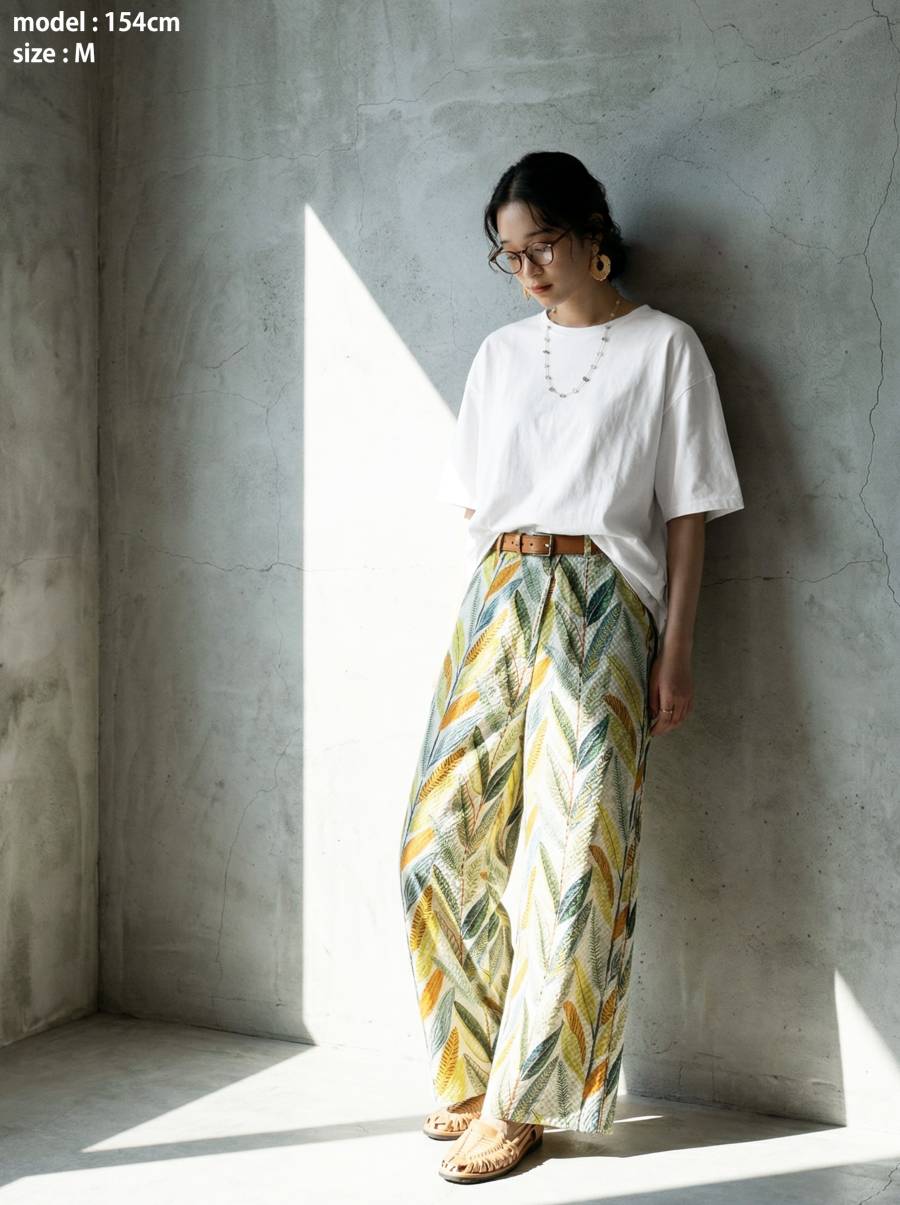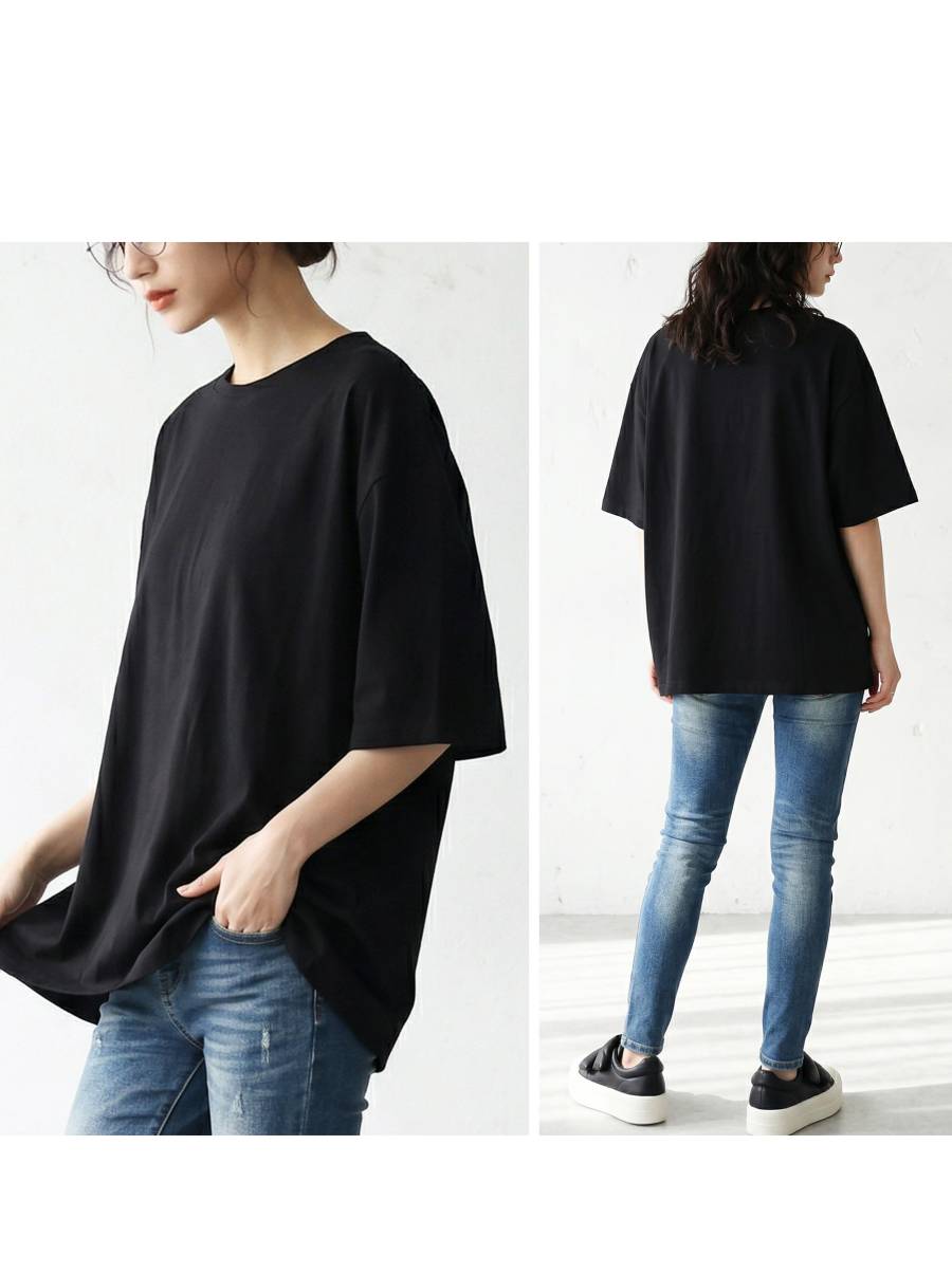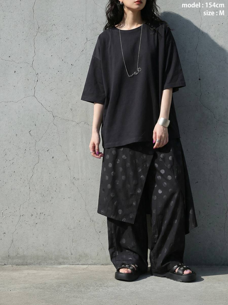 ゆったりとした形状と横に広がるシルエットで身体のラインを拾いにくく、体型カバーも叶える一枚です。