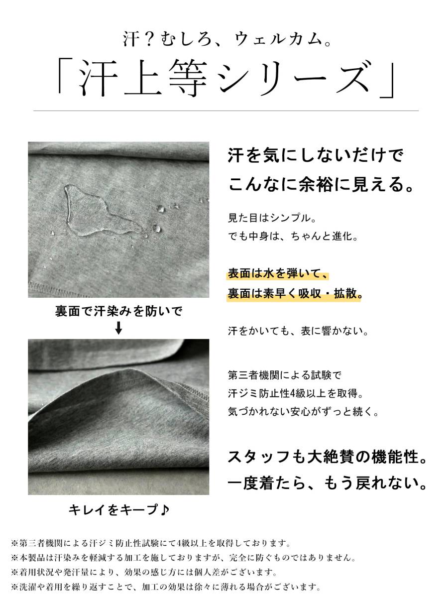汗ばむ季節も気負わず着られる、汗染み防止加工を施した大人のためのTシャツです。