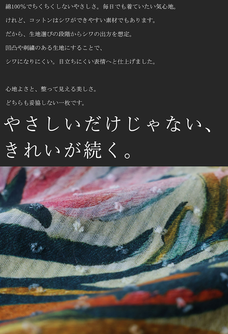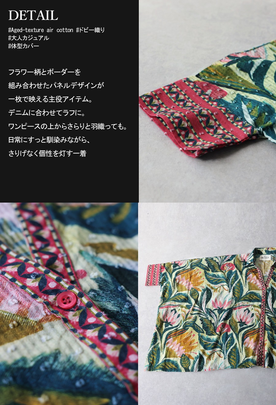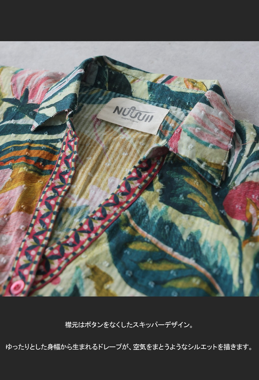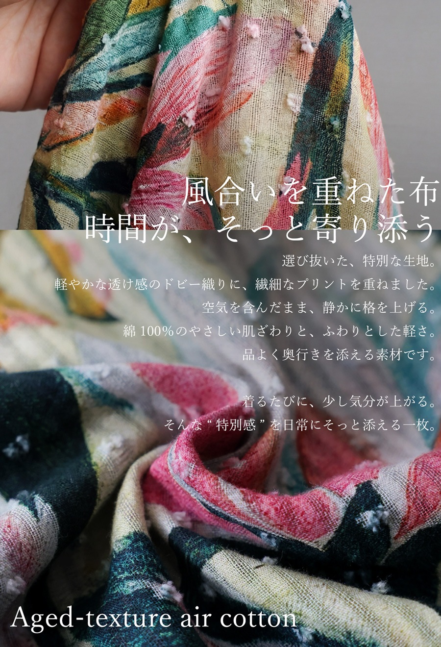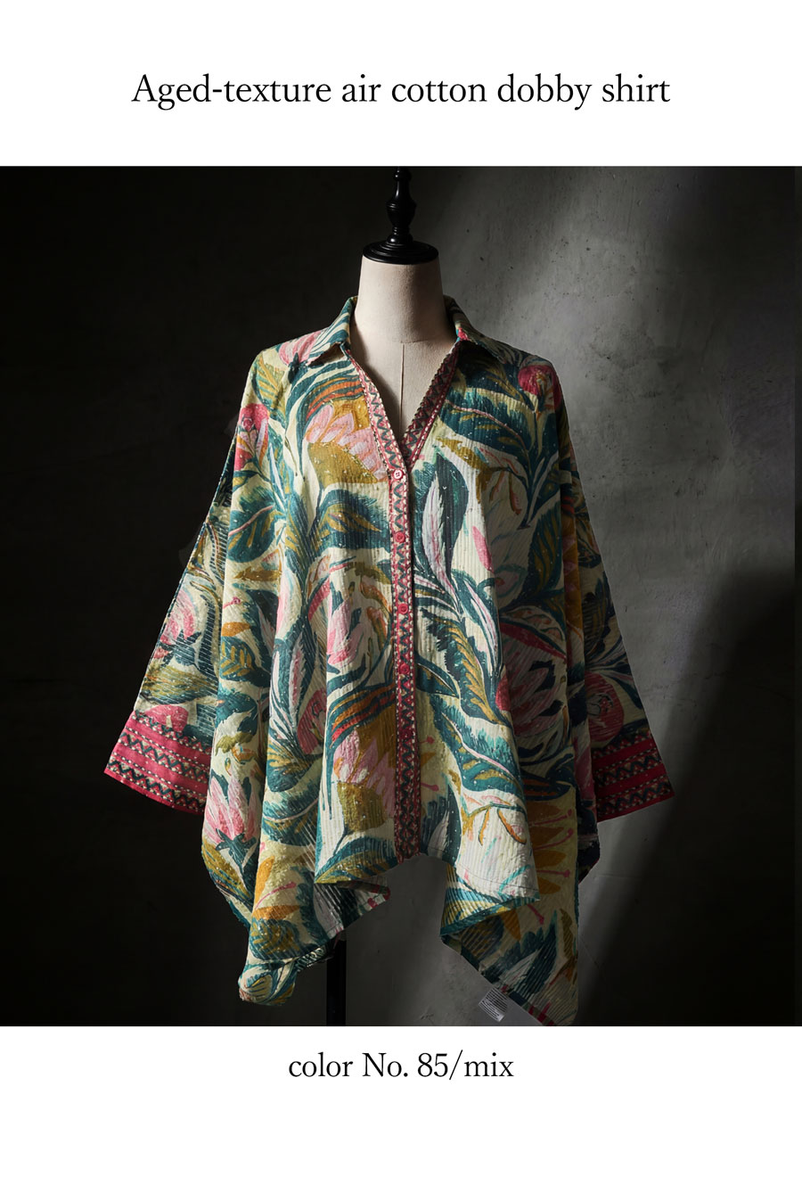 空気を含んだような軽やかなシアードビー生地に繊細な花柄(総柄)を施したブラウス(シャツ)です。