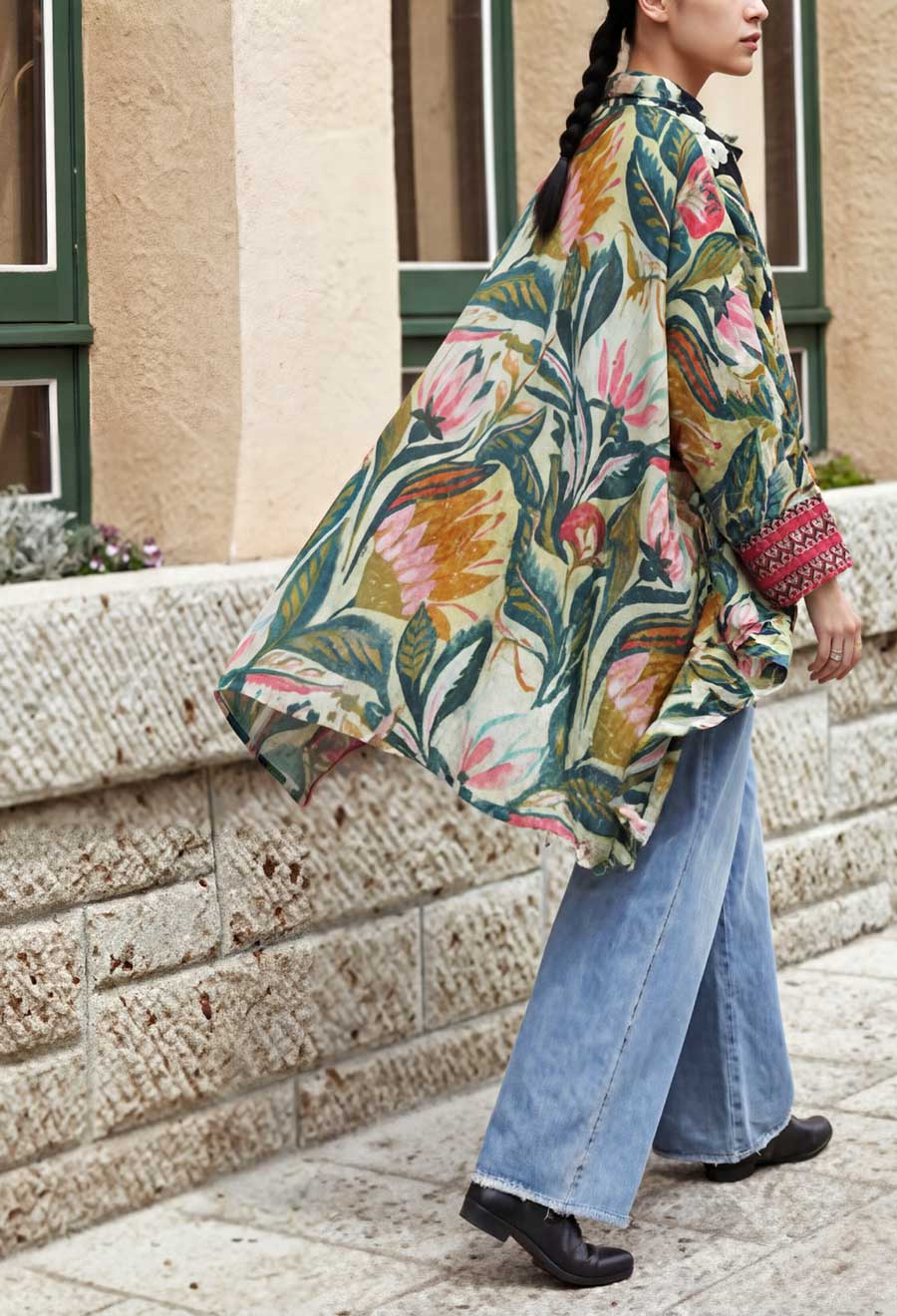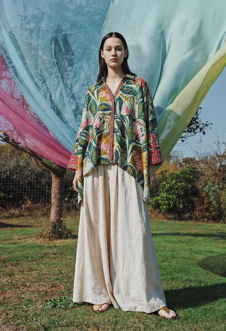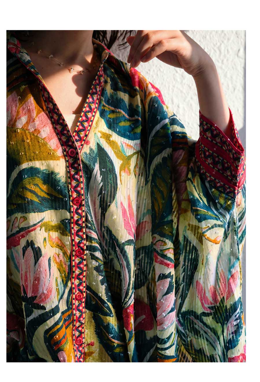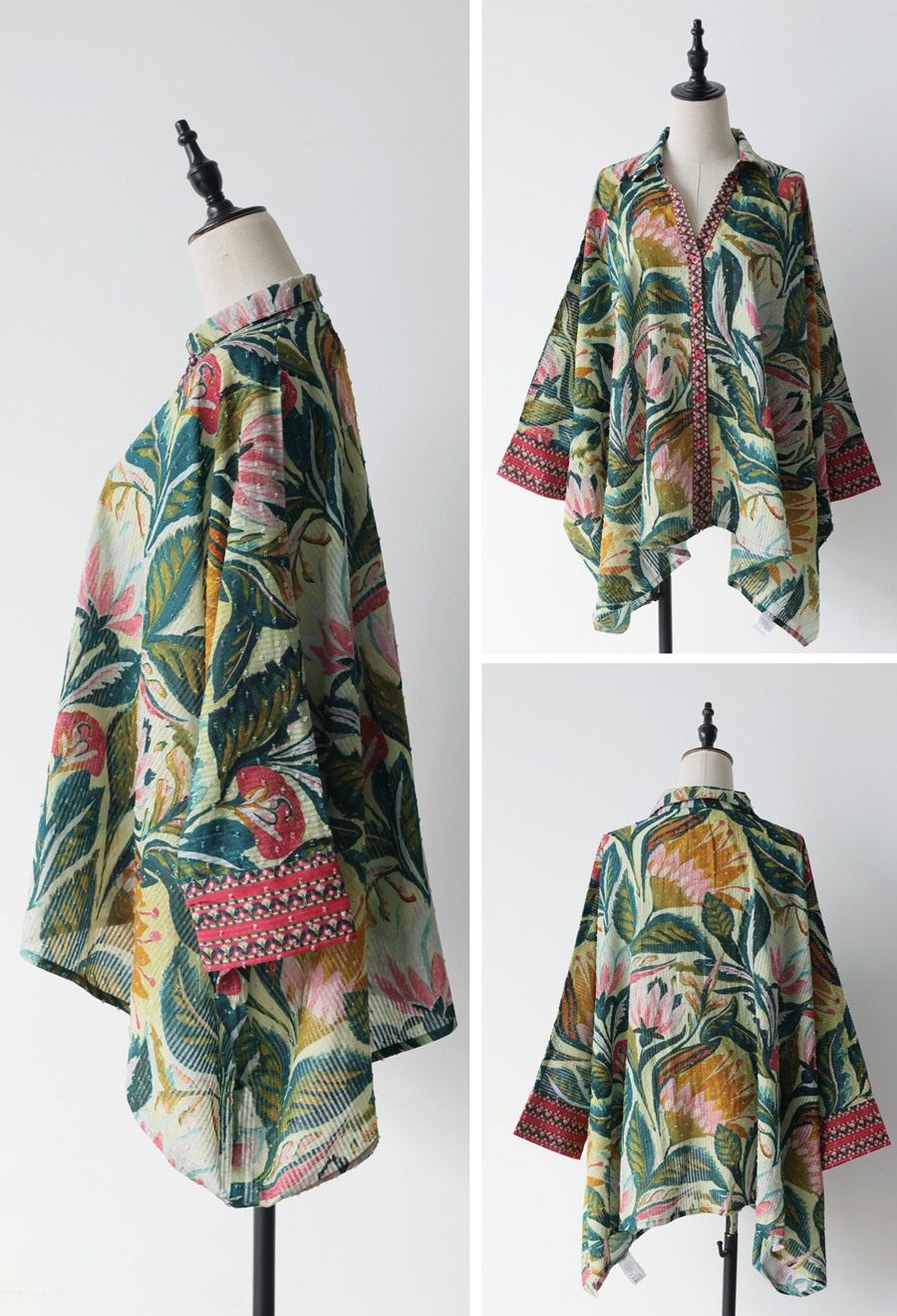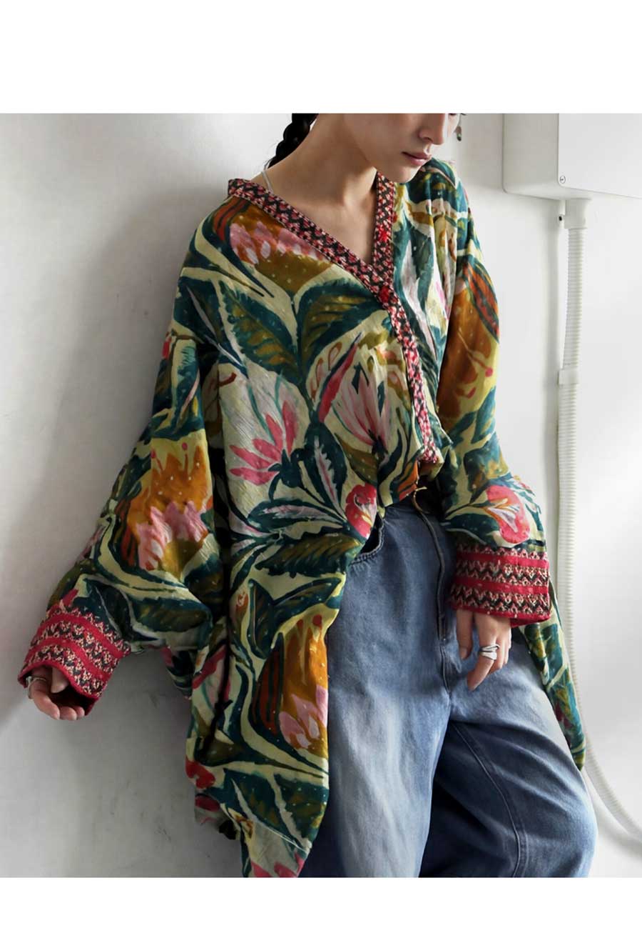 空気を含んだような軽やかなシアードビー生地に繊細な花柄(総柄)を施したブラウス(シャツ)です。