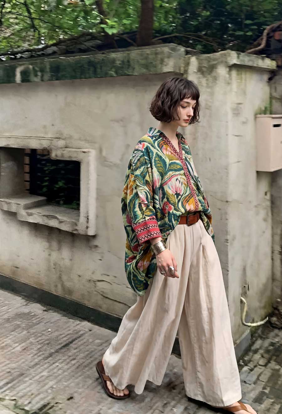 ネックラインは程よく開いたスキッパーデザインで、顔まわりに抜け感を生み出します。