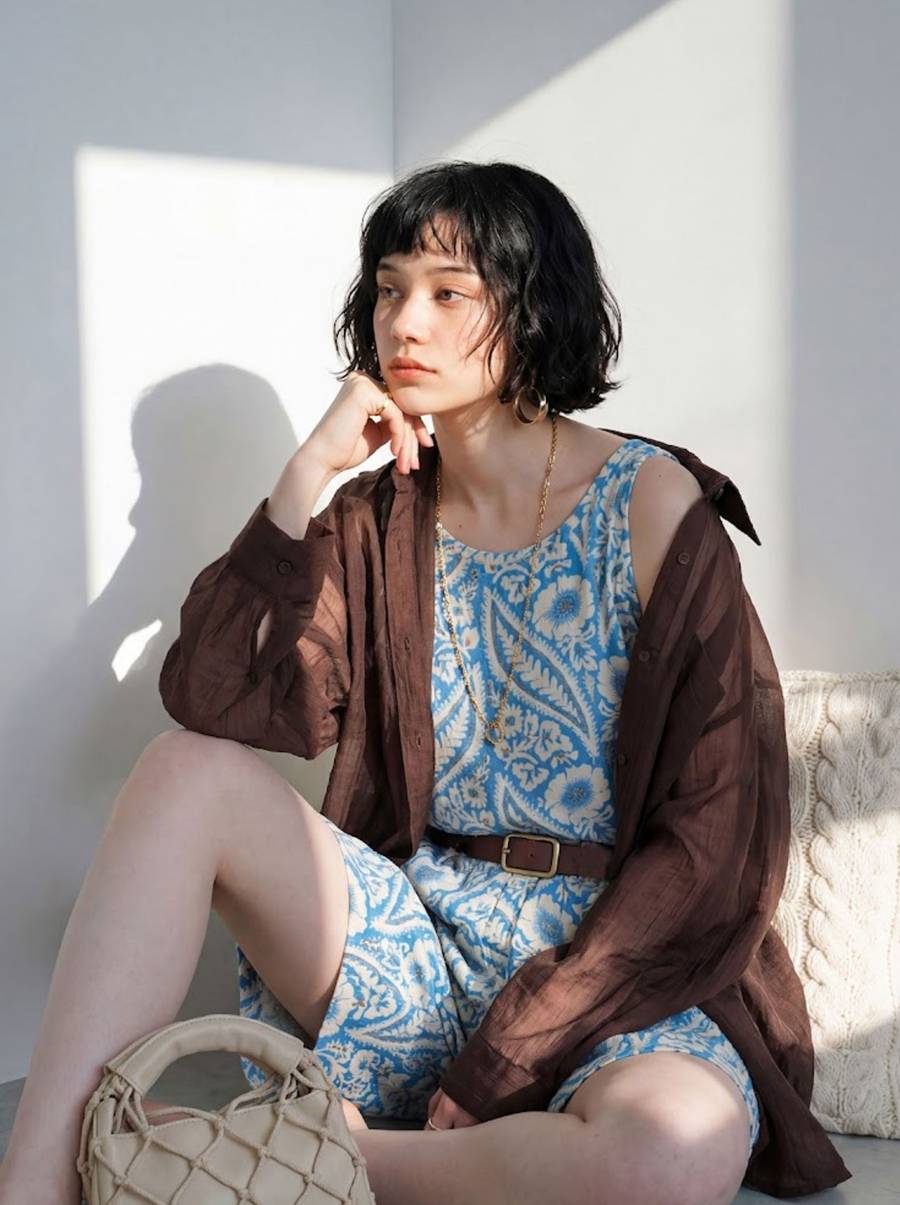花柄をベースにしたボタニカル柄(花柄・フラワー・総柄)が映えるトップスは、織りの凹凸と重なり立体感と風合いを演出します。