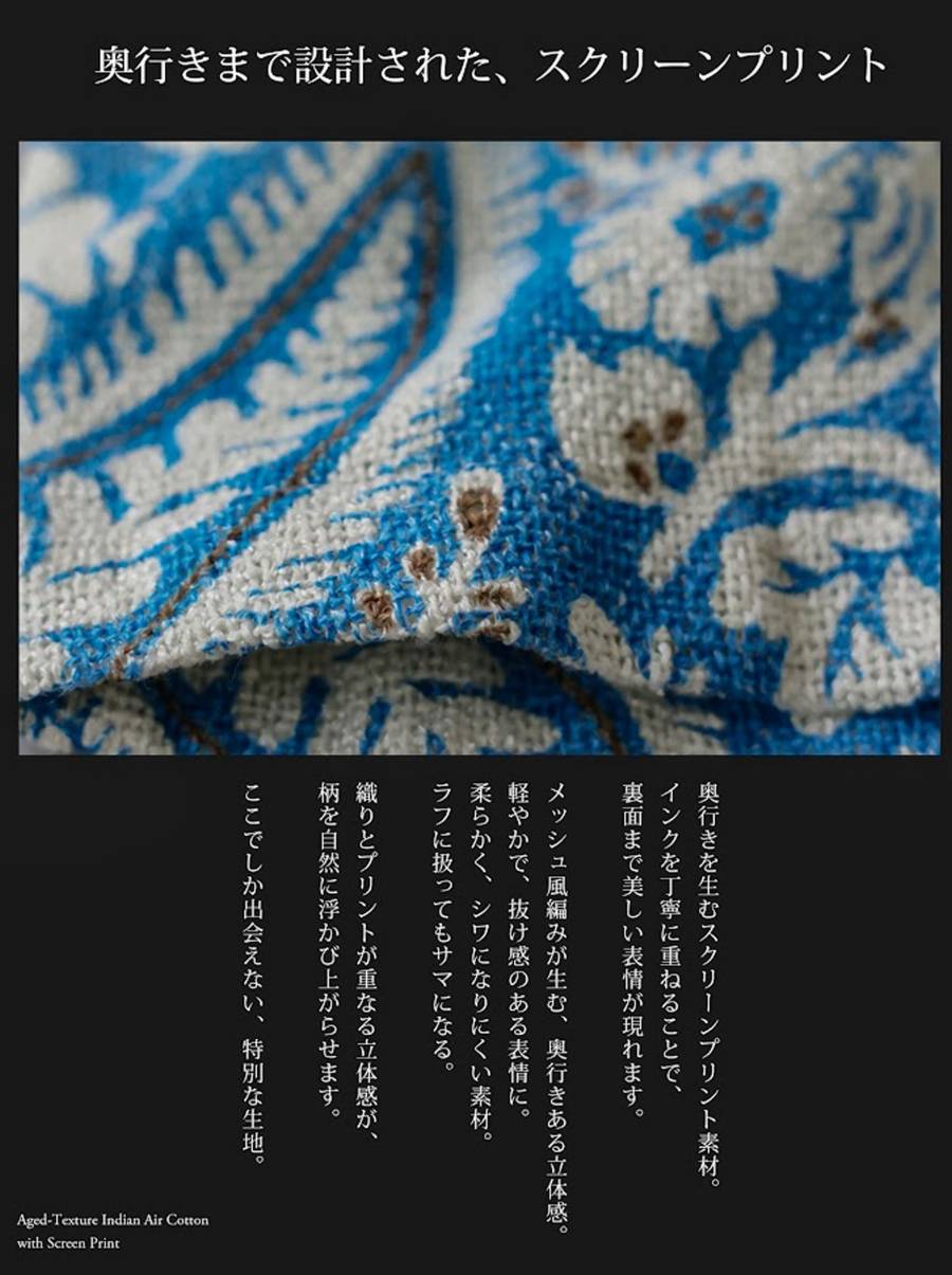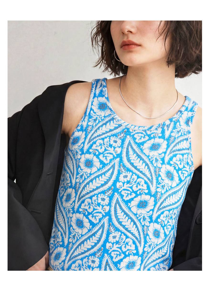 メッシュ風の編み生地にスクリーンプリントを重ねた、奥行きある表情が魅力のタンクトップです。