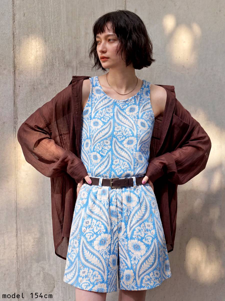 同素材のショートパンツと合わせたセットアップ対応で、統一感のあるスタイリングも楽しめます。