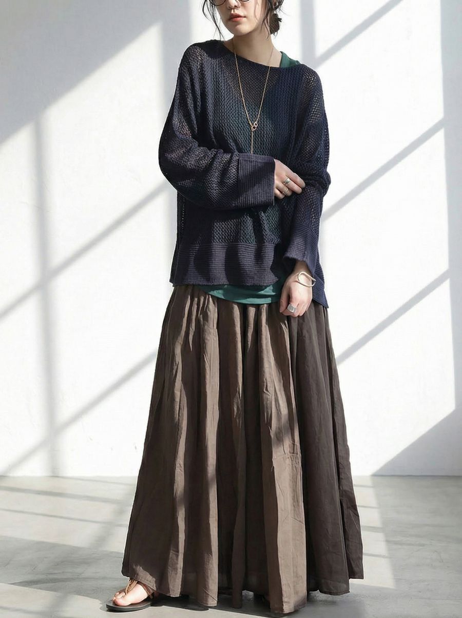 スカートタイプはコットン(綿)100%の軽やかな生地をたっぷりと使用し、揺れ感のあるボリュームシルエットが魅力。裏地付きの二重仕立てで透けにくく、春らしい軽やかさと品のある存在感を演出してくれます。