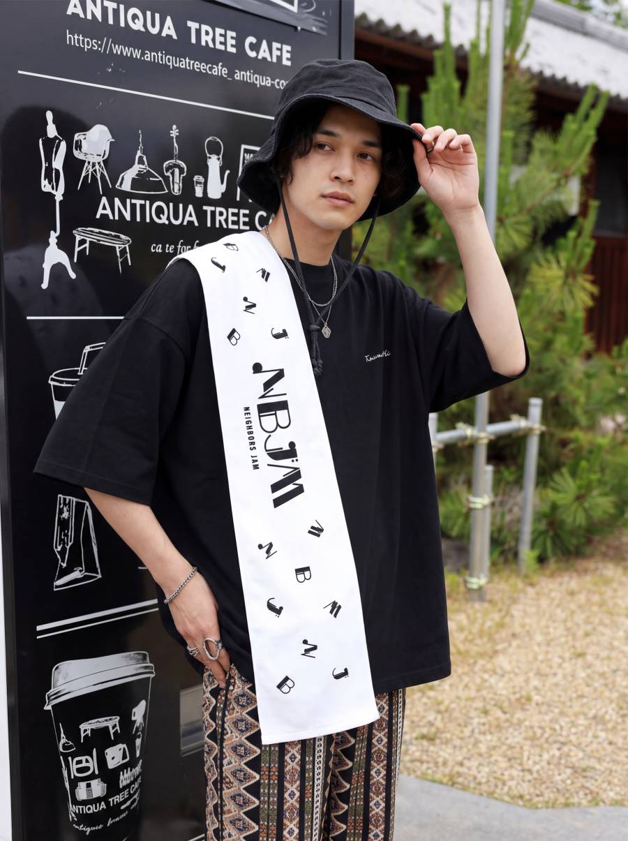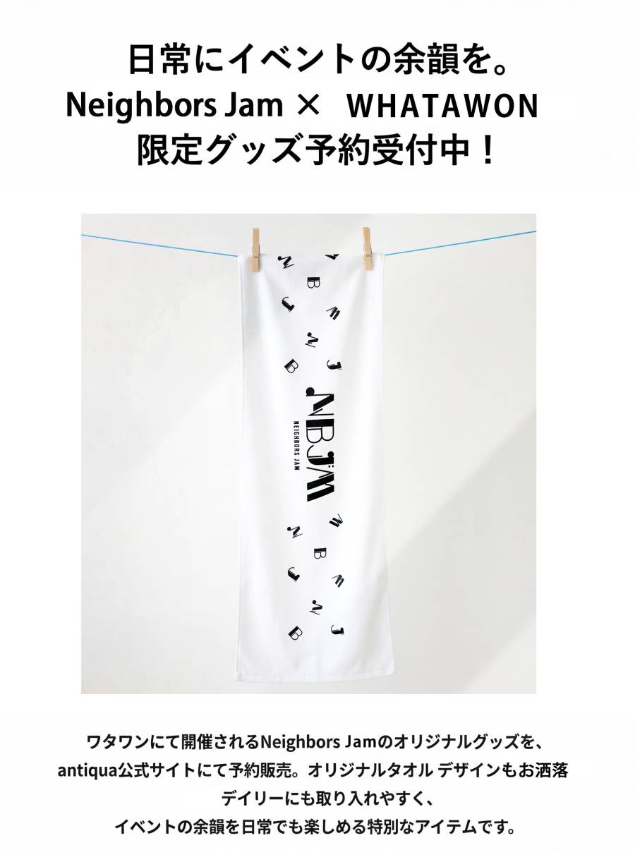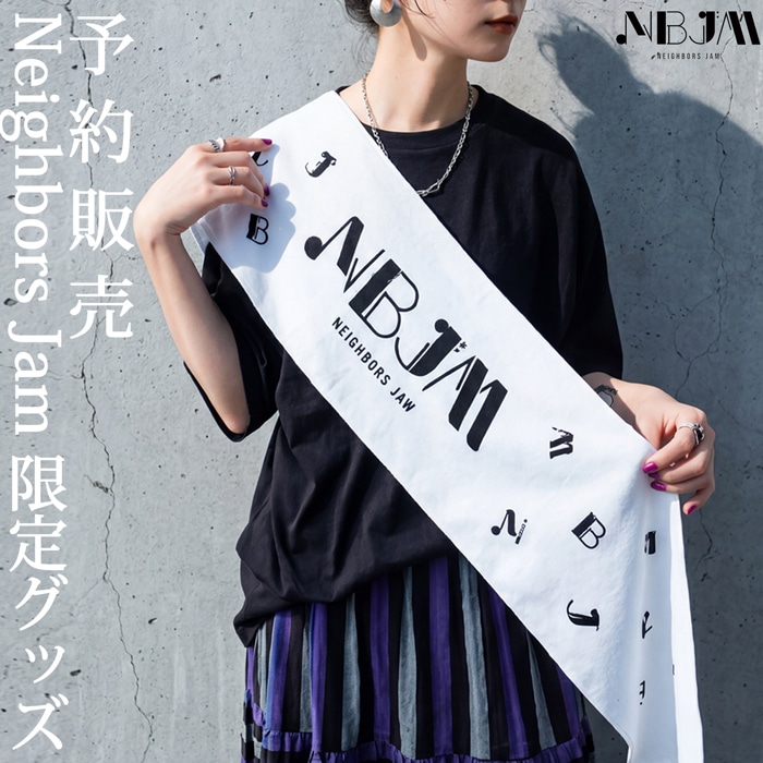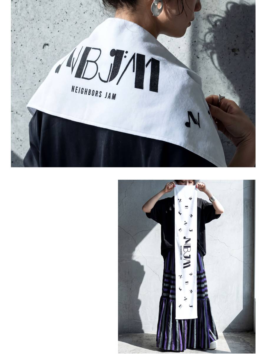 Neighbor's JAM(ネイバーズ・Neighbors Complain)の公式グッズとして展開されるロゴタオルで、イベントの余韻を日常に取り入れられる一枚です。