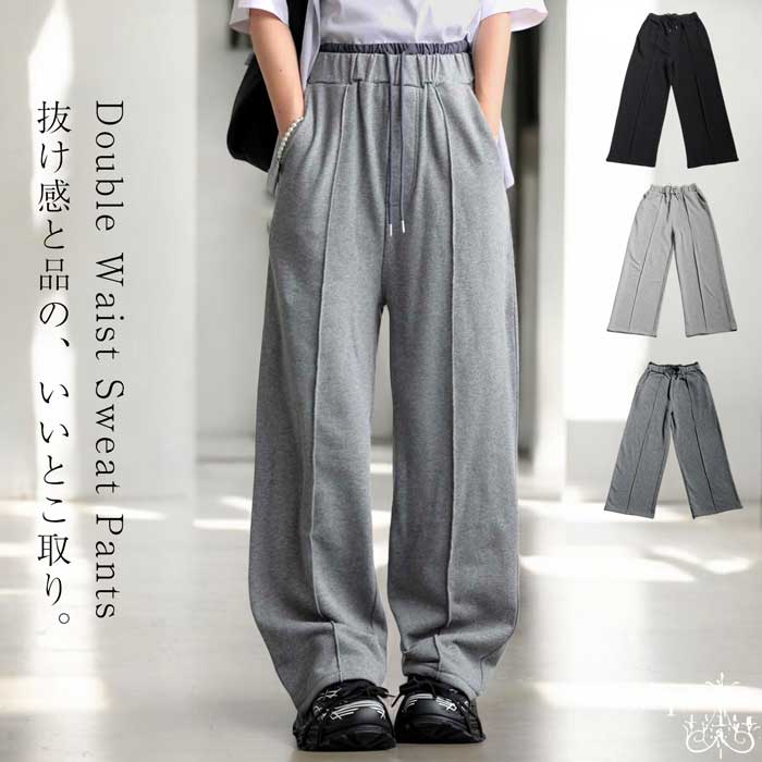 春支度、第2弾。最大15,000円OFFワイドスウェットパンツ レディース ダブルウエスト 送料無料・メール便不可4,490(税込)