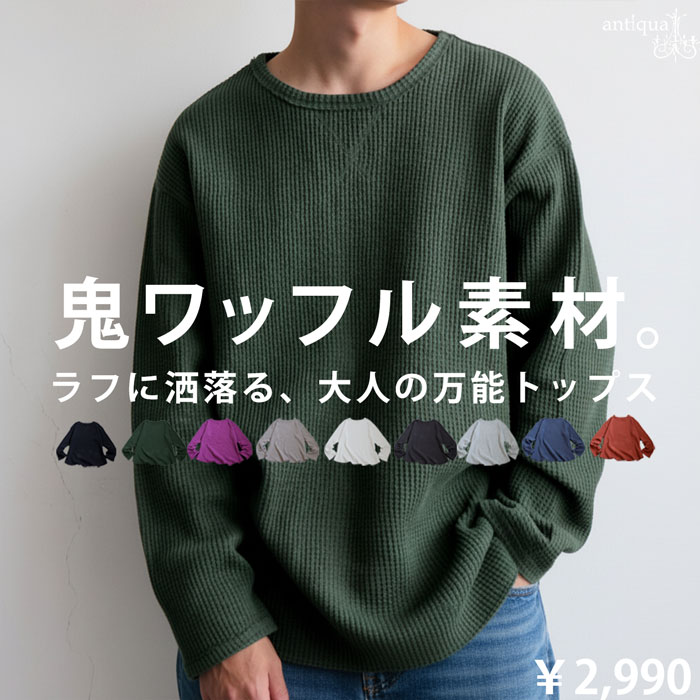ワッフルトップス メンズ 長袖 トップス クルーネック・再入荷 メール便不可2,990(税込)
