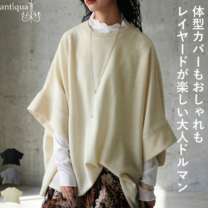 ドルマントップス レディース 五分袖 クルーネック ニット風・メール便不可2,990(税込)