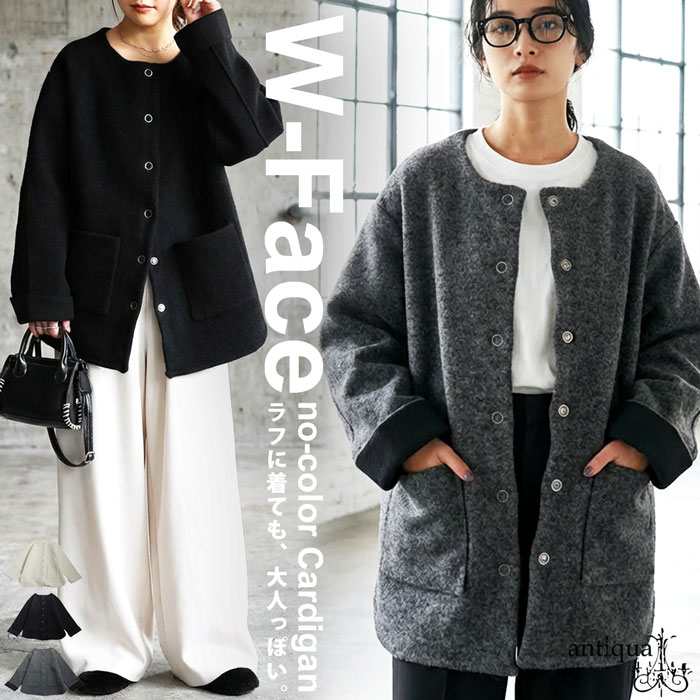 Wフェイス カーディガン レディース 羽織り 無地 送料無料・メール便不可6,990(税込)