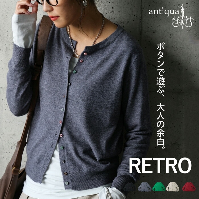 配色ボタン クルーネック カーディガン レディース 送料無料・(100)メール便可3,990(税込)