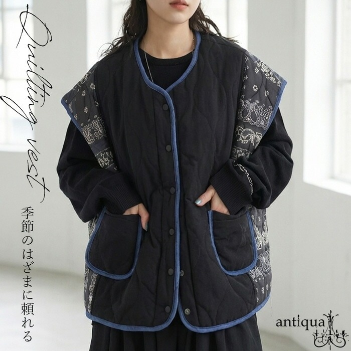 切替デザイン 中綿ベスト レディース 前開き ボタン 送料無料・メール便不可12,990(税込)